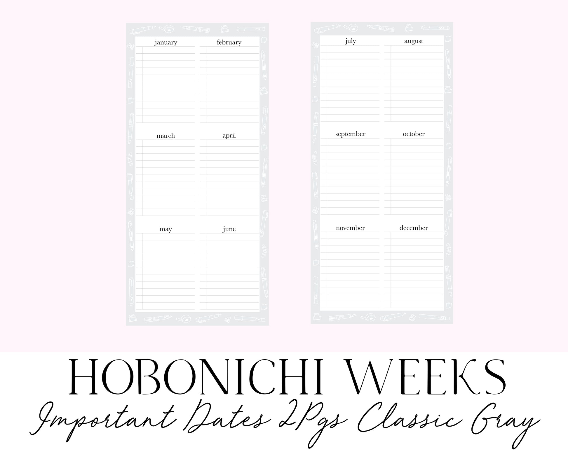Hobonichi Weeks Important Dates 2 pgs Classic Gray (Full Page Printable Stickers)