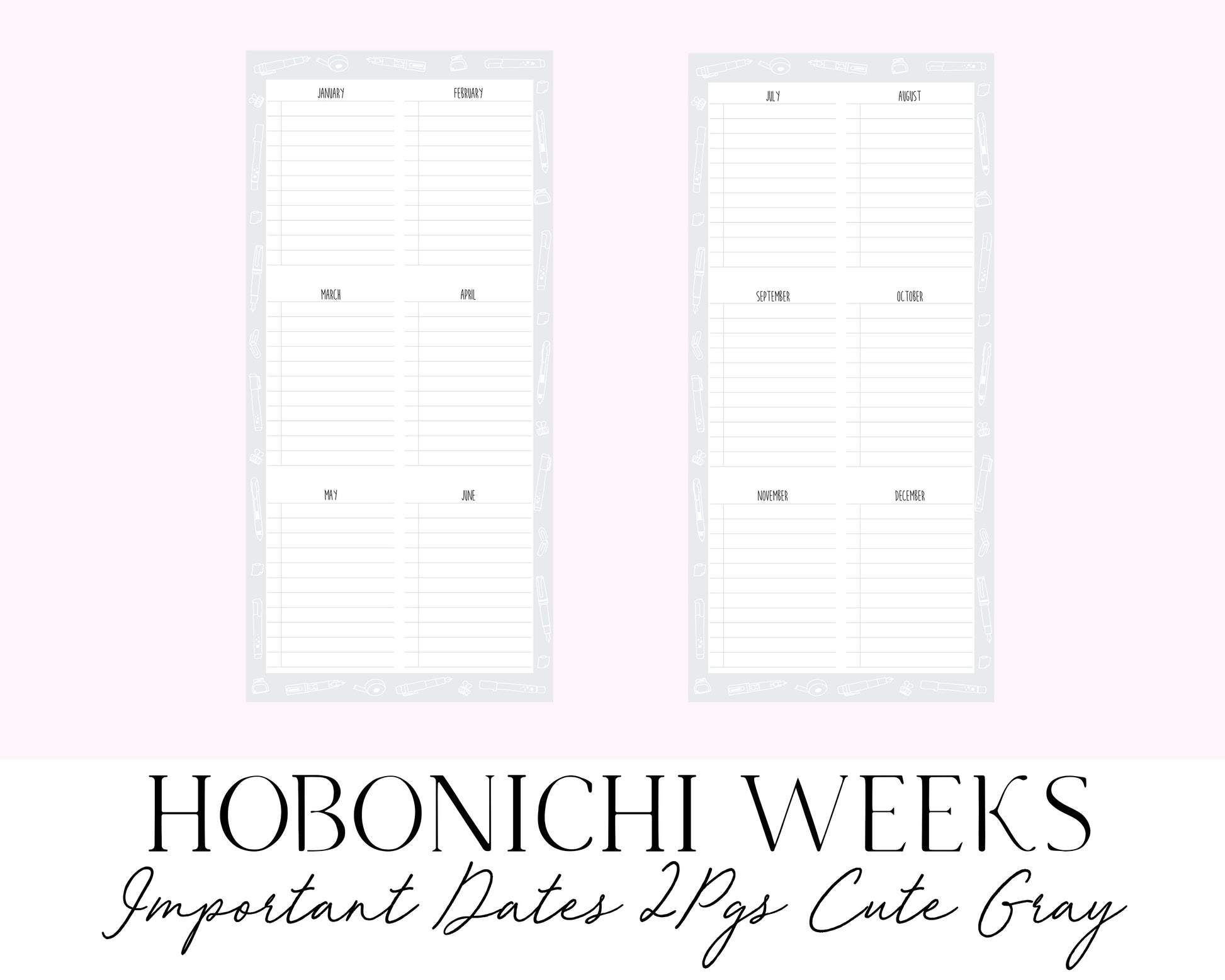 Hobonichi Weeks Important Dates 2 pgs Cute Gray (Full Page Printable Stickers)