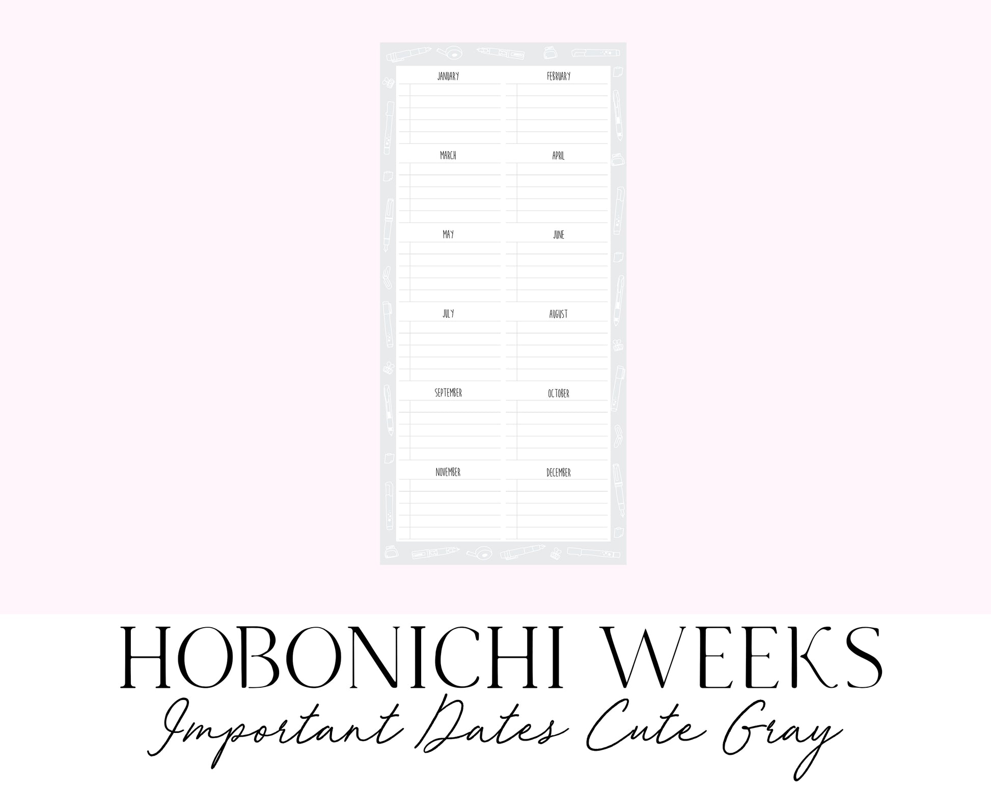 Hobonichi Weeks Important Dates Cute Gray (Full Page Printable Stickers)