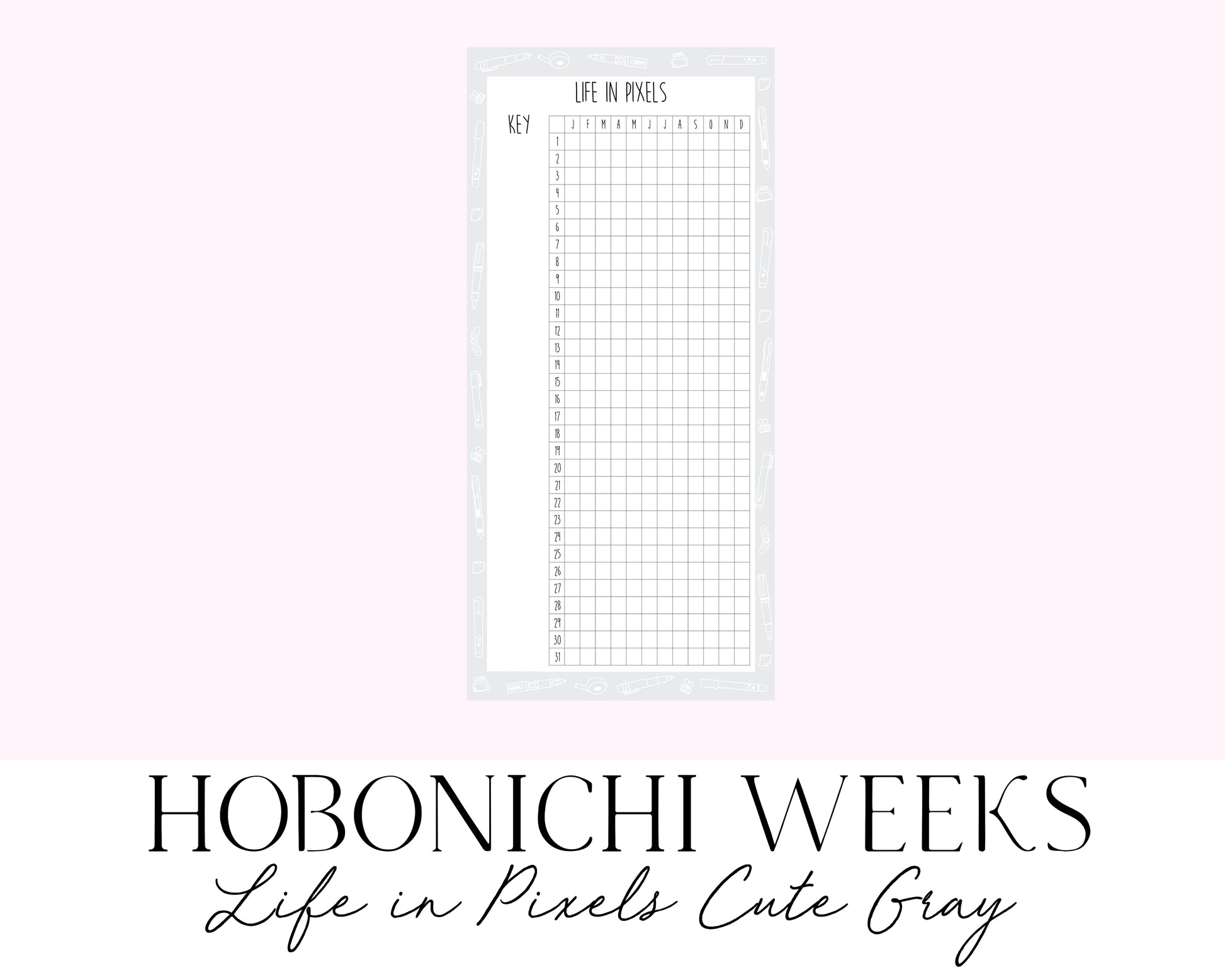 Hobonichi Weeks Life in Pixels Cute Gray (Full Page Printable Stickers)