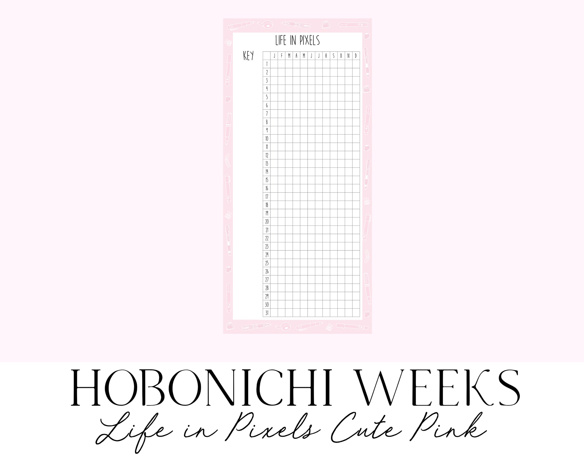 Hobonichi Weeks Life in Pixels Cute Pink (Full Page Printable Stickers)
