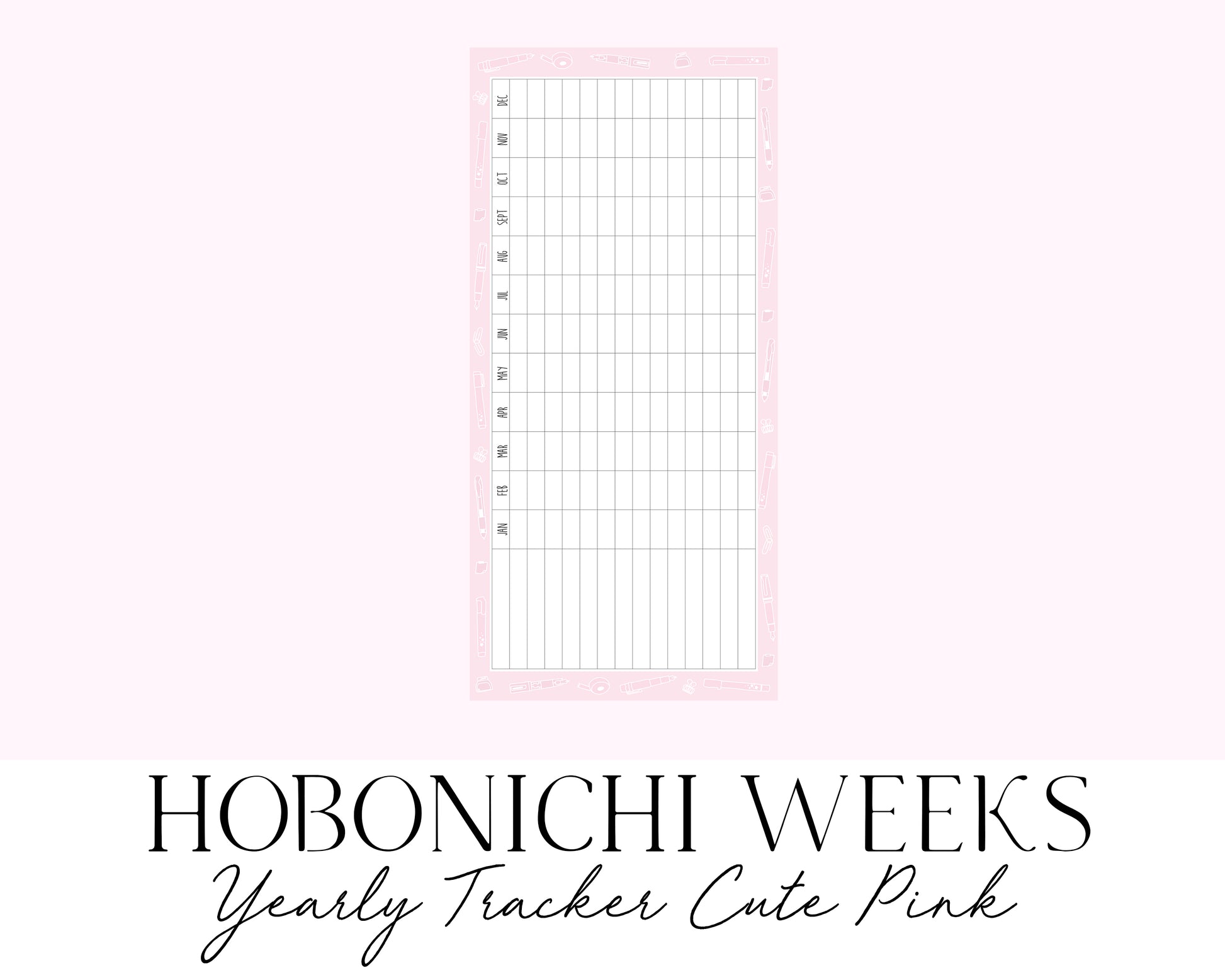 Hobonichi Weeks Yearly Tracker Cute Pink (Full Page Printable Stickers)