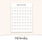 This kit contains 2 pages. Page one has date covers, full boxes, blank full boxes and checklists, scripts, page flags and more. Page two has weekly tracker, habit trackers, top and bottom washi and quarter boxes.