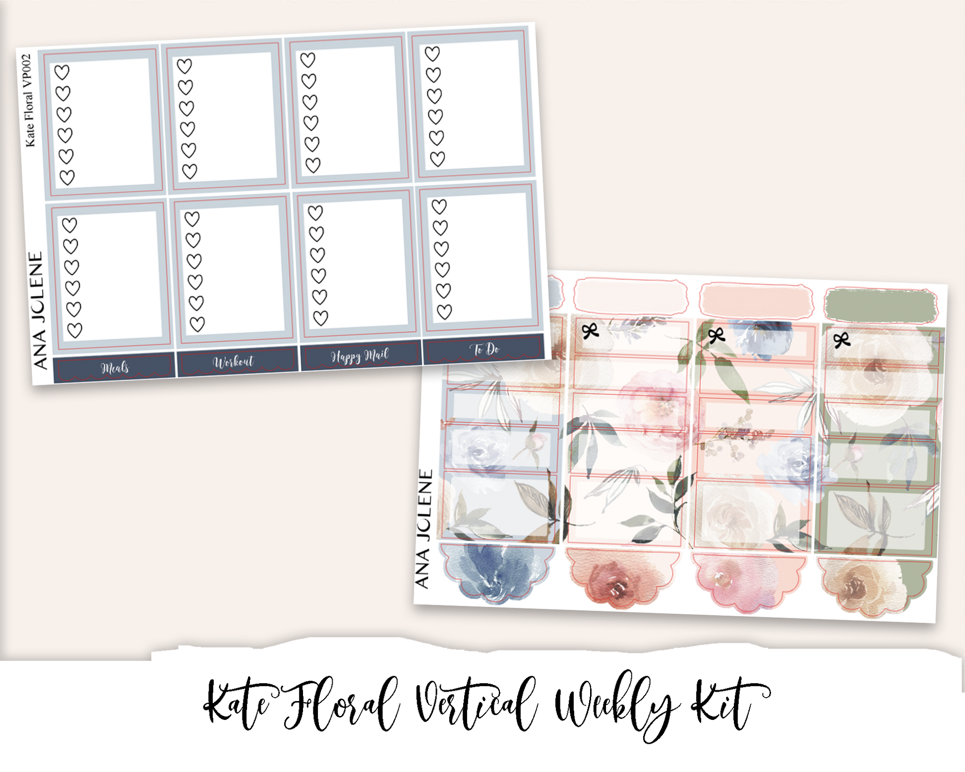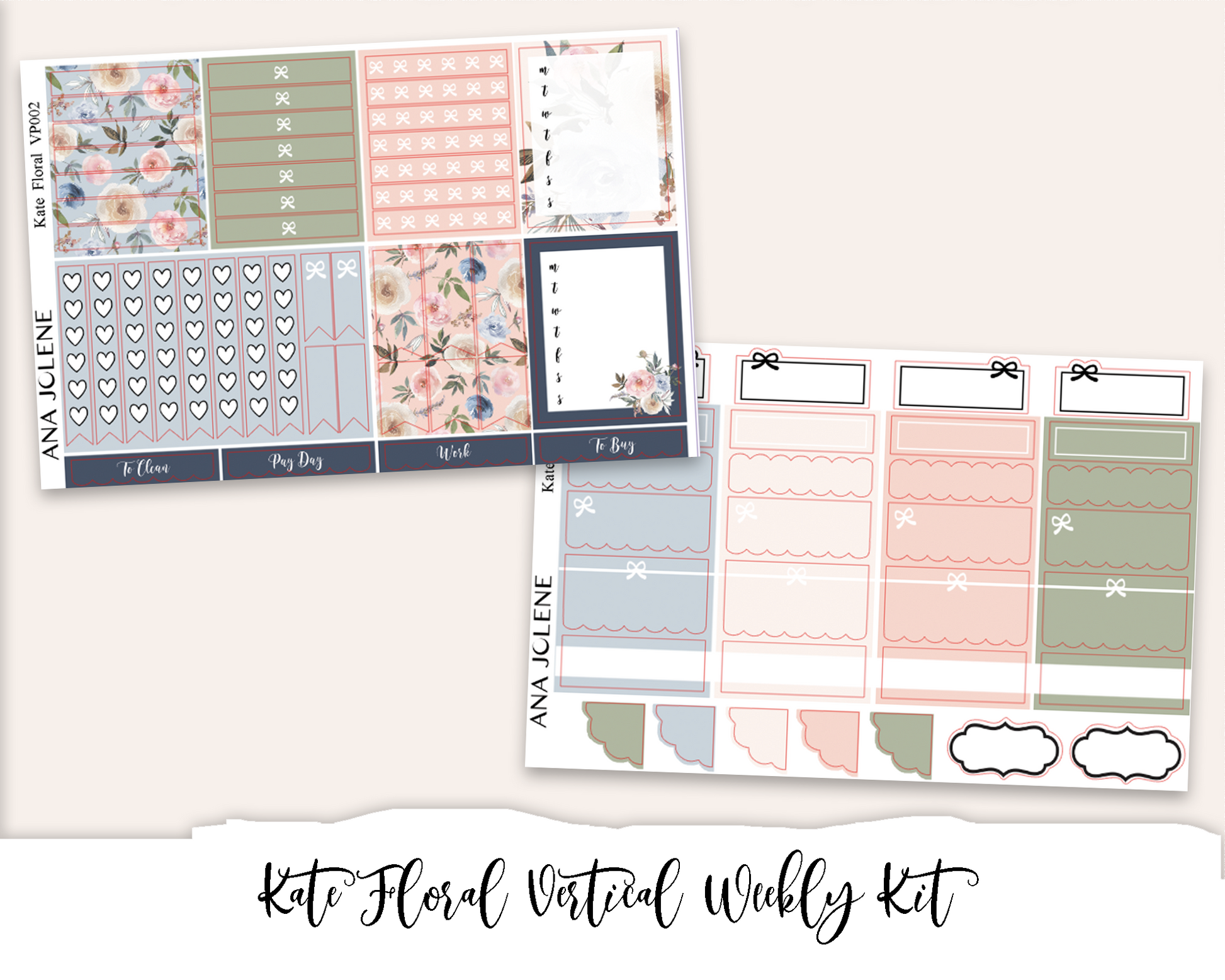 KATE FLORAL Planner Sticker Kit (Vertical Weekly)