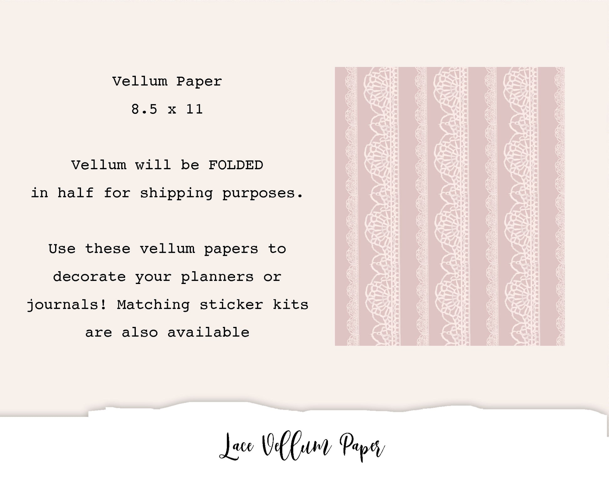 Please note that the vellum will be FOLDED for shipping purposes. Use in your planners and journals to decorate! Matching sticker kits are available too.
