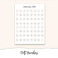 This kit contains 2 pages. Page one has date covers, full boxes, blank full boxes and checklists, scripts, page flags and more. Page two has weekly tracker, habit trackers, top and bottom washi and quarter boxes.