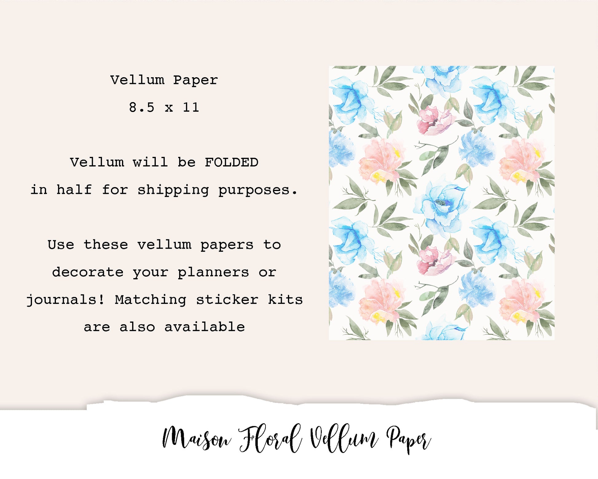 Please note that the vellum will be FOLDED for shipping purposes. Use in your planners and journals to decorate! Matching sticker kits are available too.