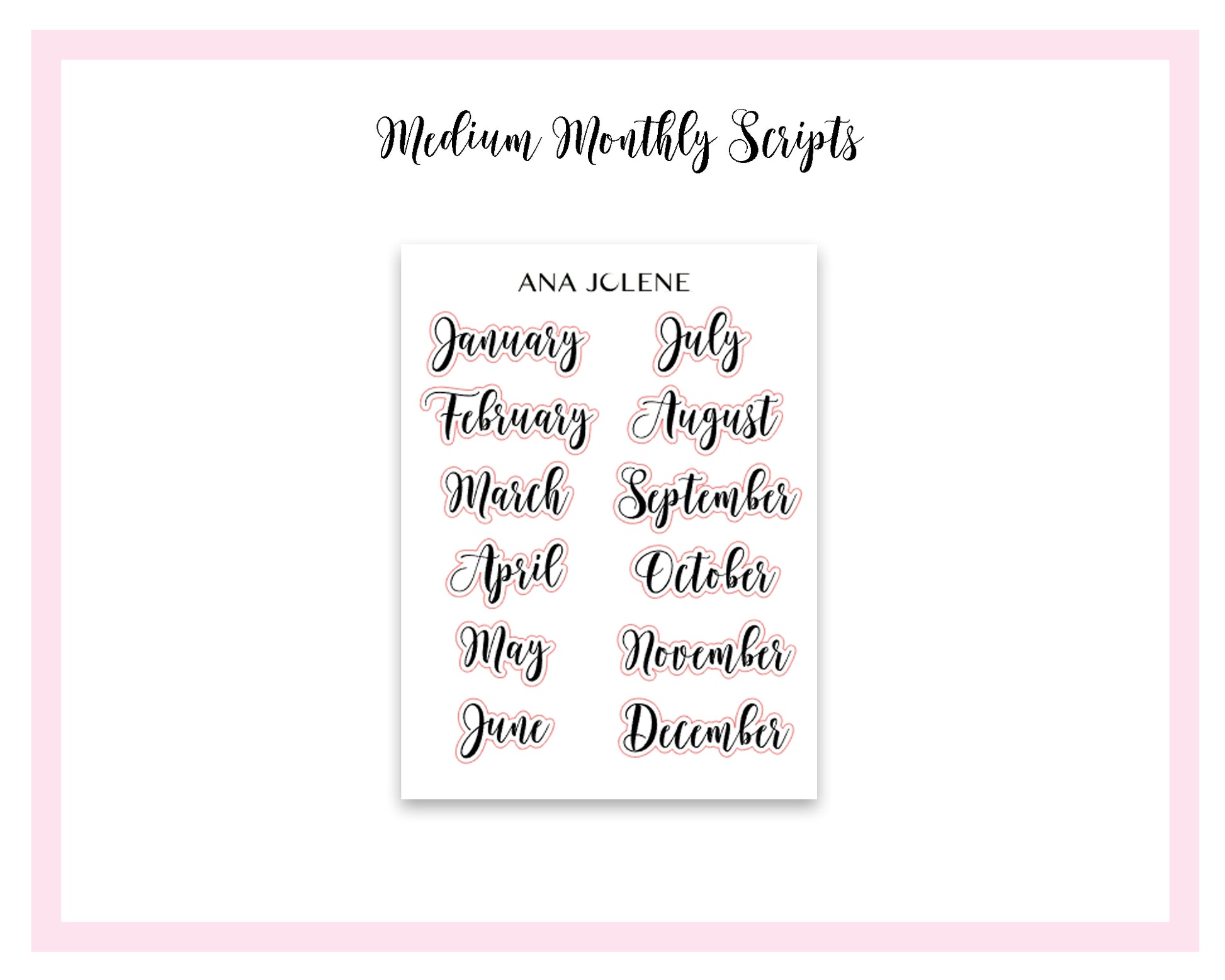 Medium Monthly scripts - Scripts Stickers for Planners and Bullet Journals