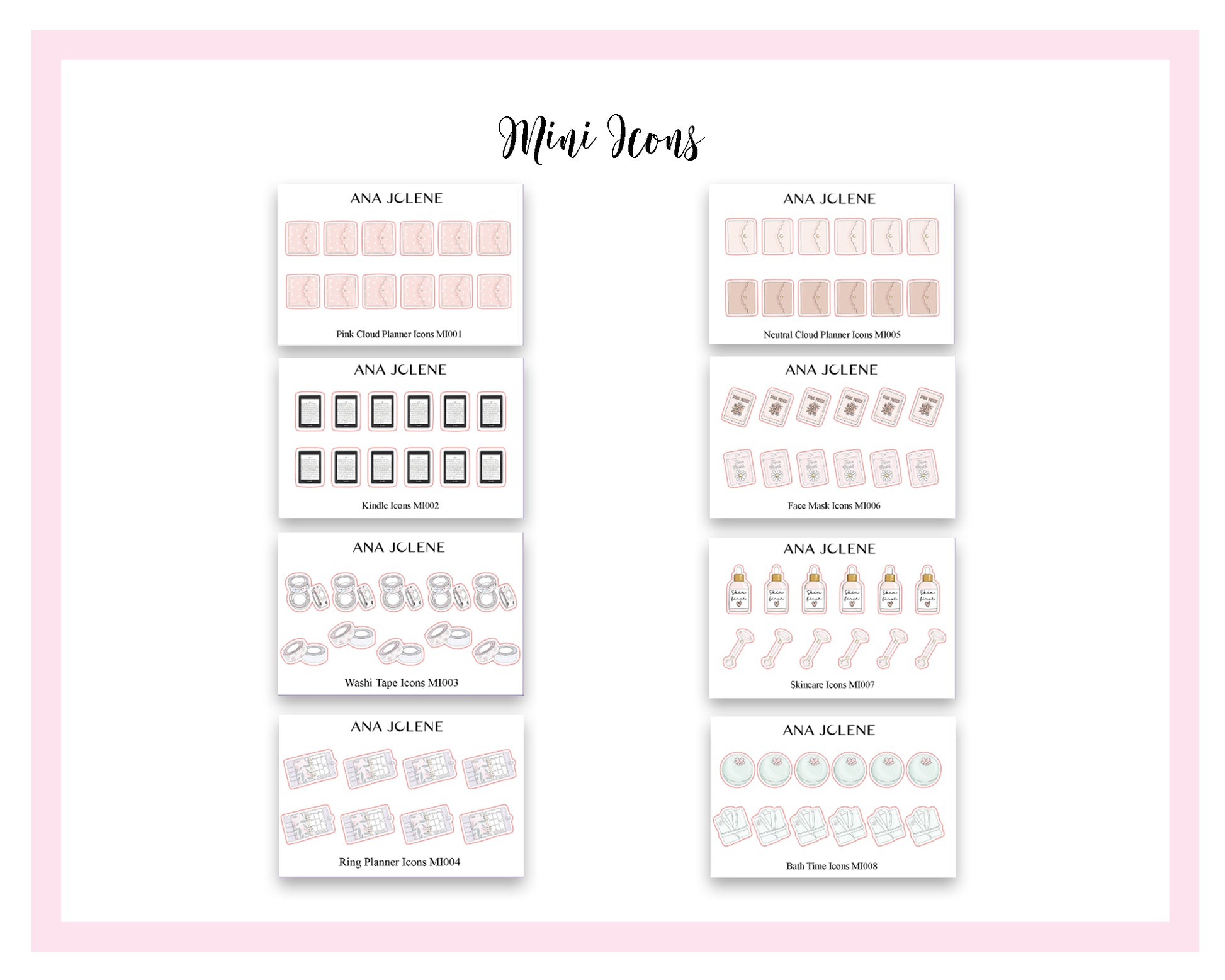 Includes one mini sheet of icon stickers of your choice for planners and bullet journals. Sheets are slightly bigger than a credit card for portability and can fit inside mini sticker albums, but the actual icons are regular size. Please see photos for what the icons will look like.