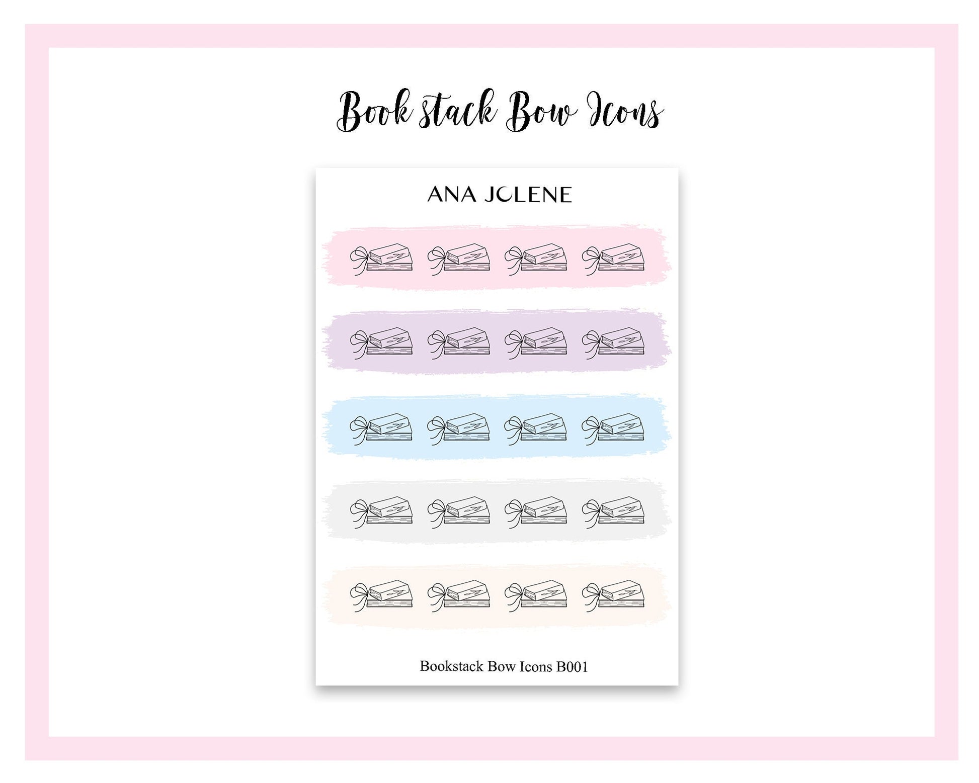 Bookstack (Reading) Bow Icons - Minimal Line Art Bow Icons Stickers for Planners and Bullet Journal