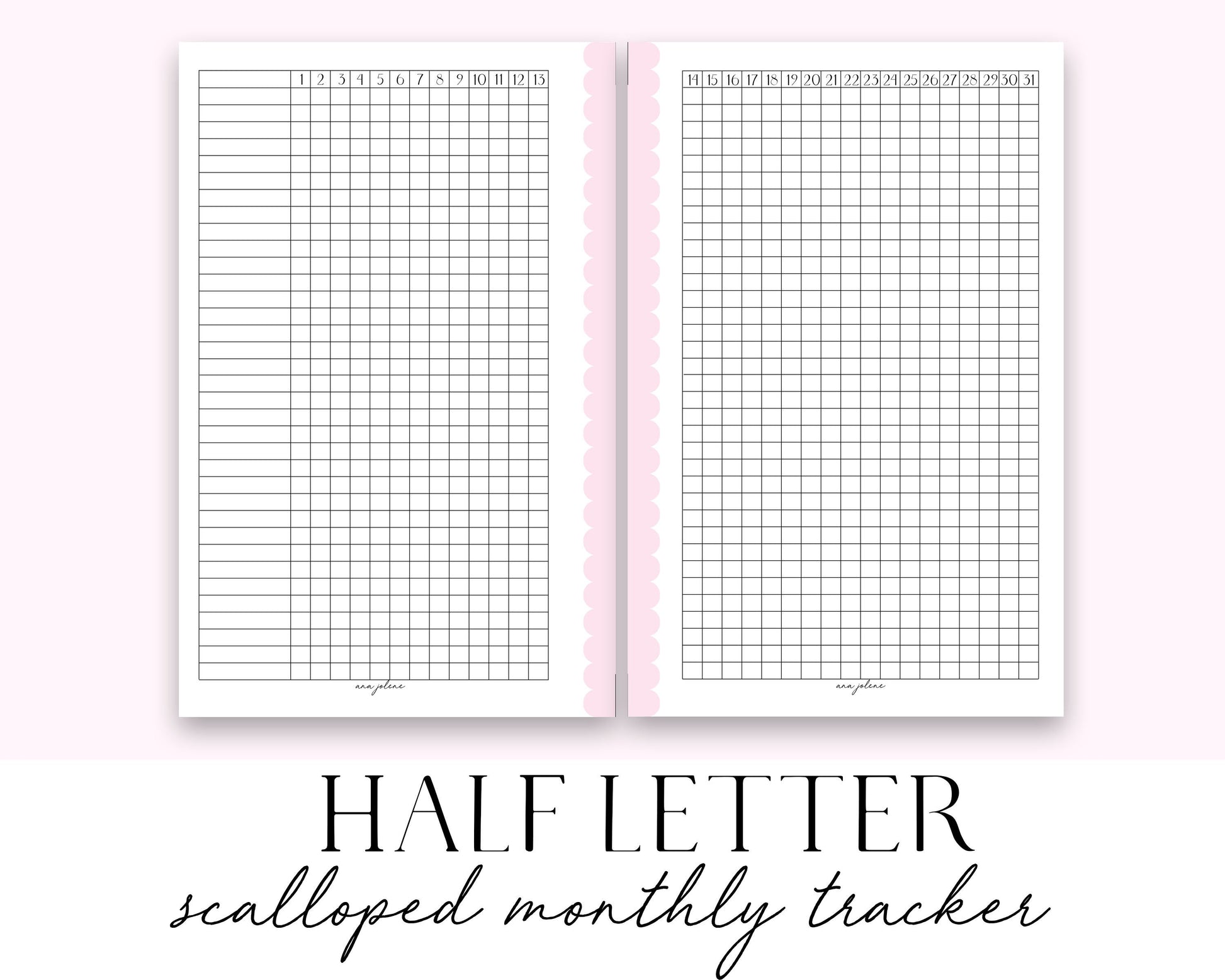 Half Letter Monthly Tracker Scalloped Pink Printable