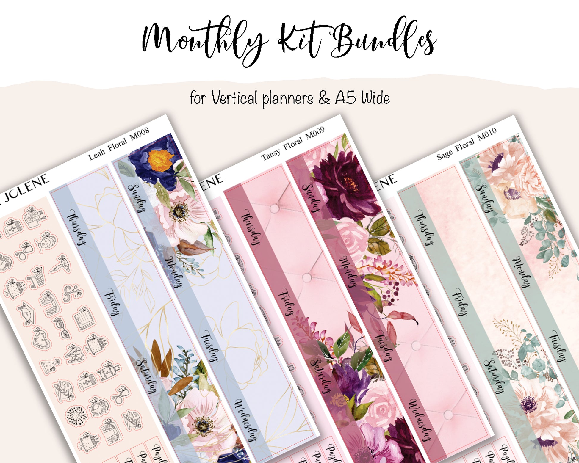 This bundle consists of 3 curated monthly kits for vertical planners and A5Wide inserts at a discounted price. Fits perfectly in the Monthly Vertical Weekly planners and A5 Wide inserts from my shop. Can be used in other vertical planners as well.