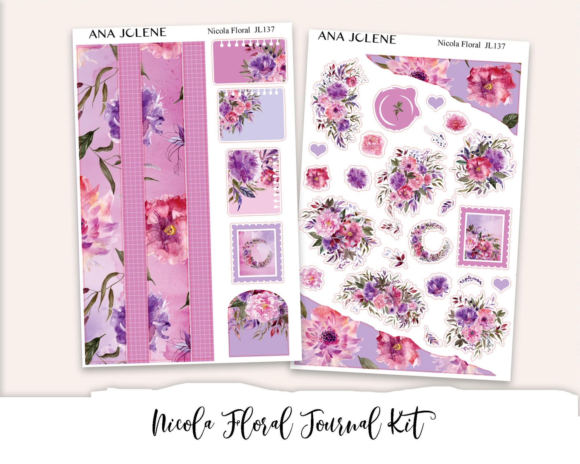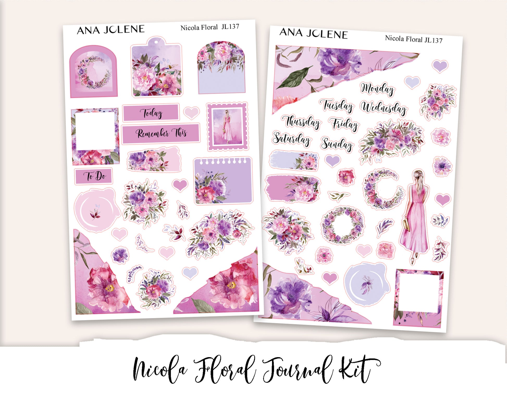 Planner Sticker Kit for bullet journals, Hobonichi and B6 Stalogy notebooks. This is a four page kit featuring medium sized ripped washi, swatches, deco elements and fashion girls, perfect to help you decorate your planners or journals.