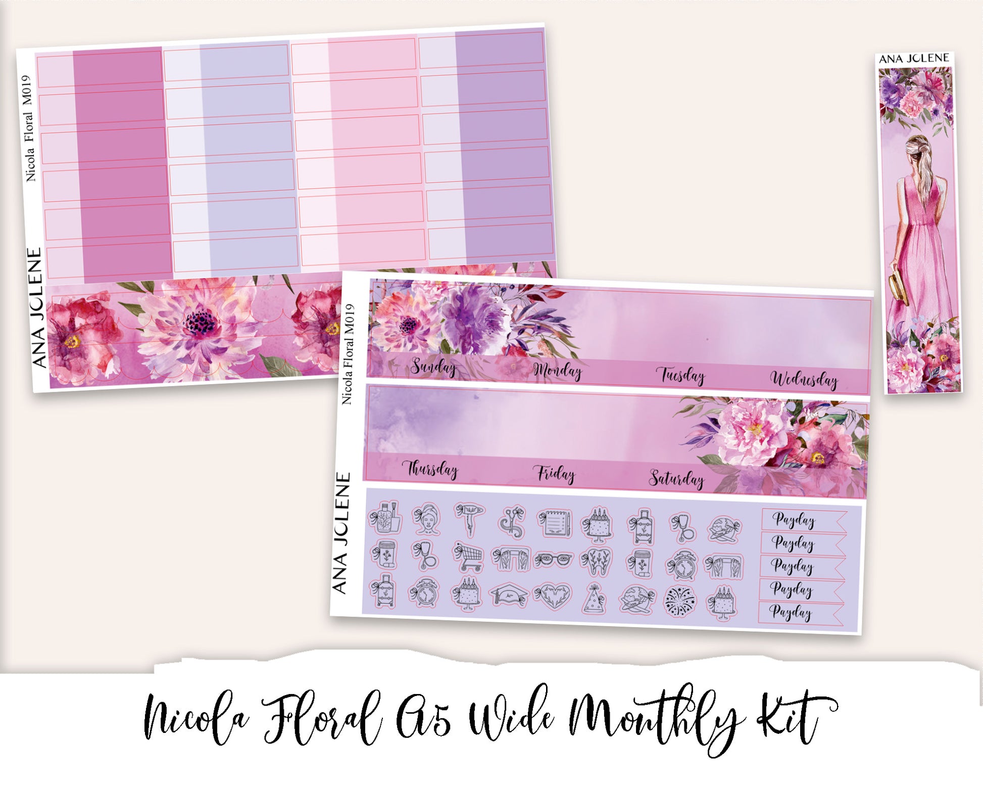 NICOLA FLORAL Monthly Planner Sticker Kit (A5Wide)