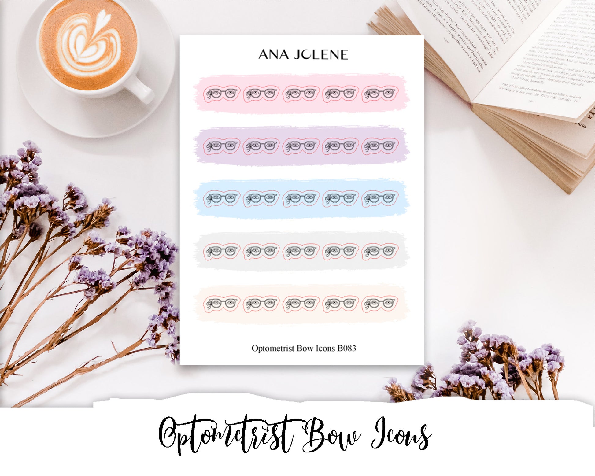 Optometrist Bow Icons - Minimal Line Art Bow Icons Stickers for Planners and Bullet Journal