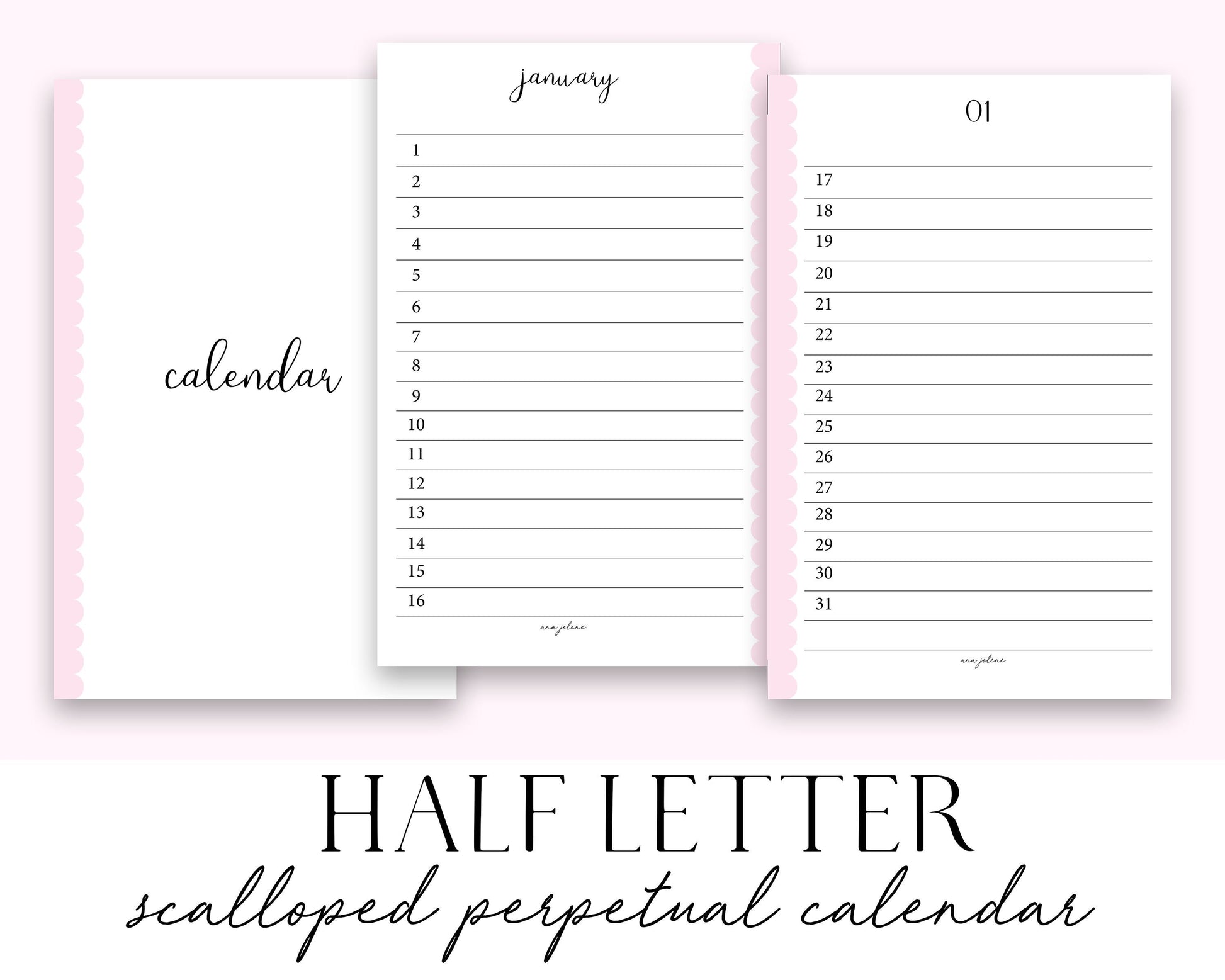 Half Letter Perpetual Calendar (A5 Rings) Printable
