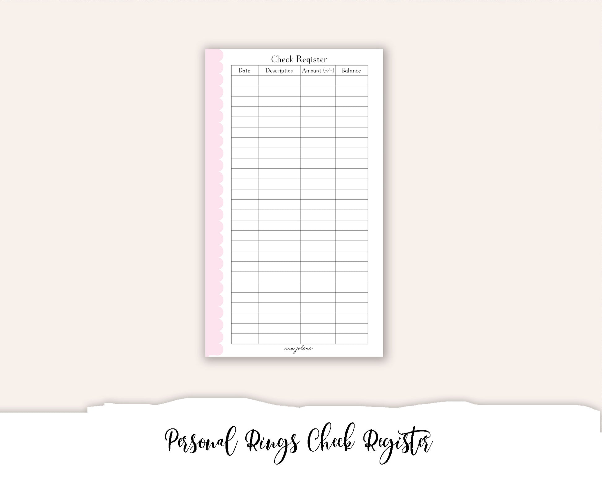 Personal Rings Check Register Printable