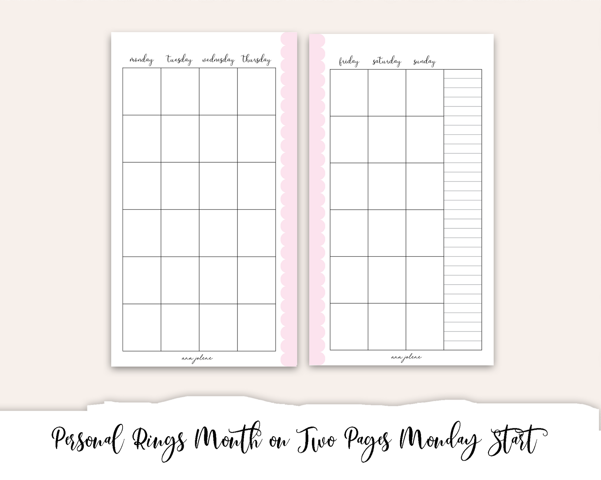 Personal Rings Month on Two Pages Printable