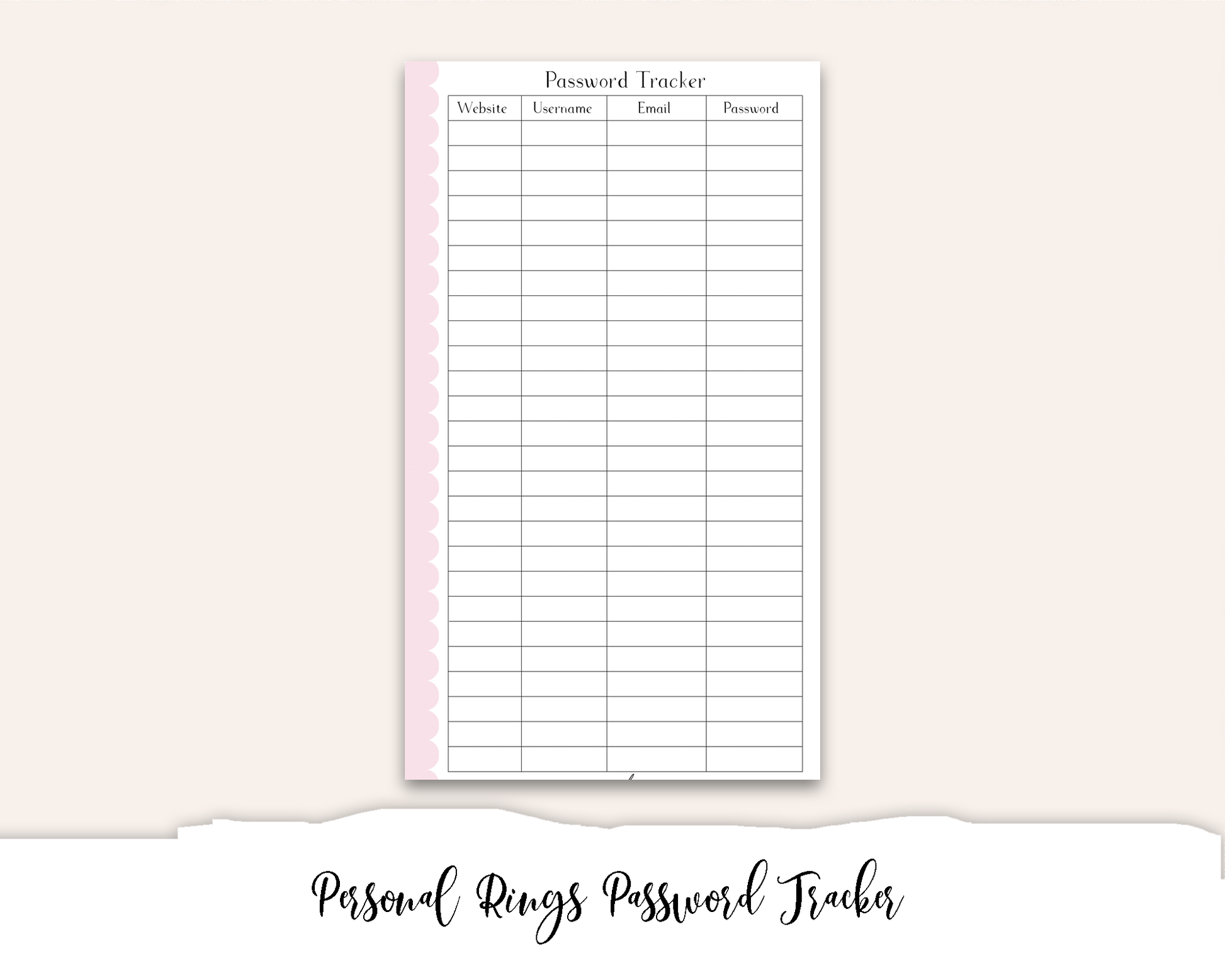 Personal Rings Password Tracker Printable
