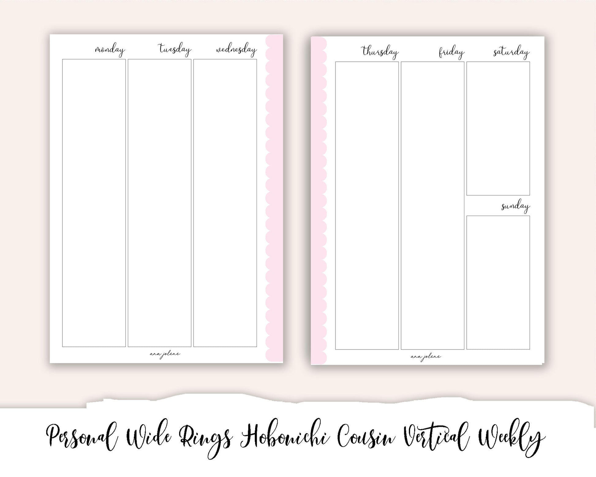 Personal Wide Rings Hobonichi Cousin Compatible Vertical Weekly Printable