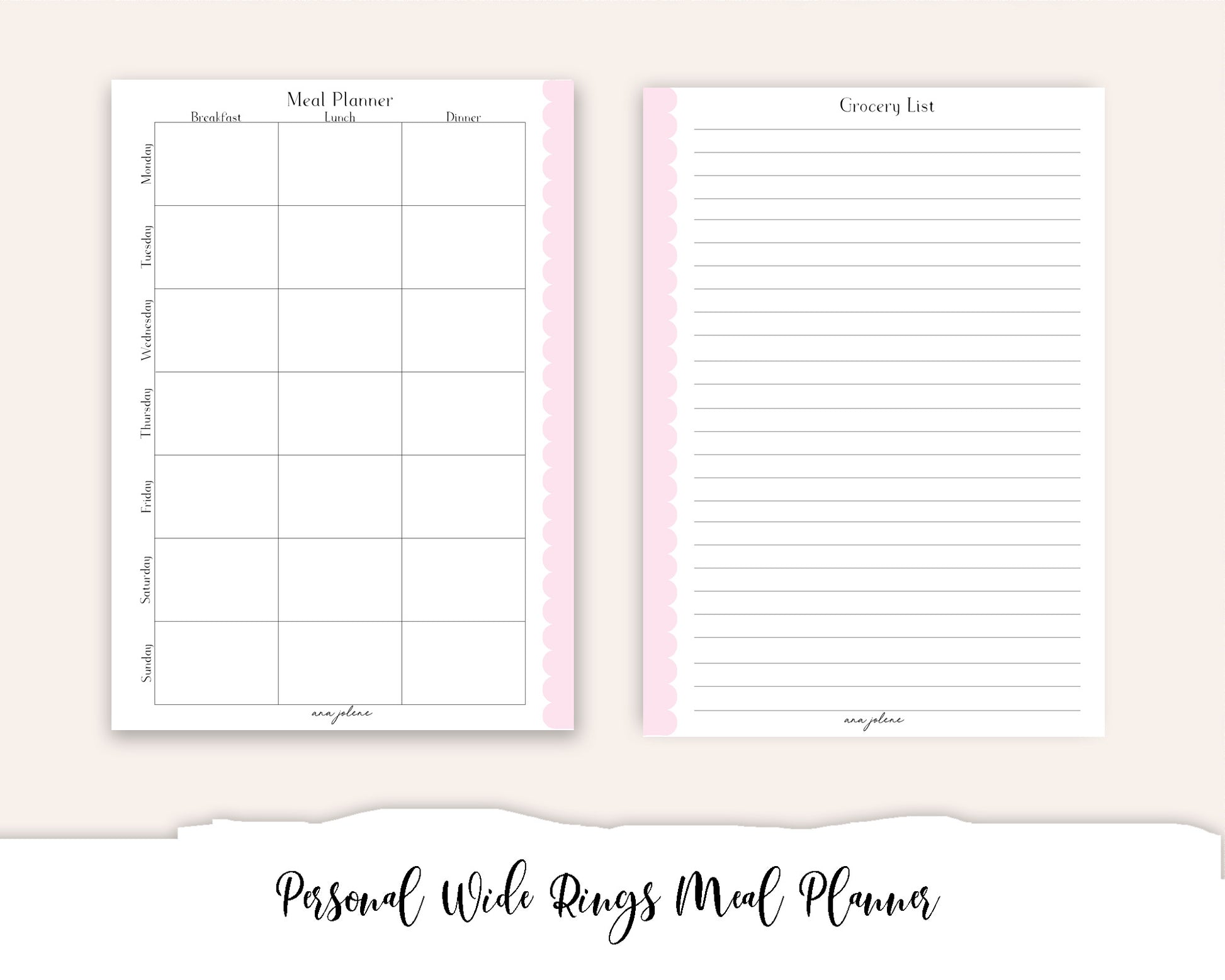 Personal Wide Rings Meal Planner Printable
