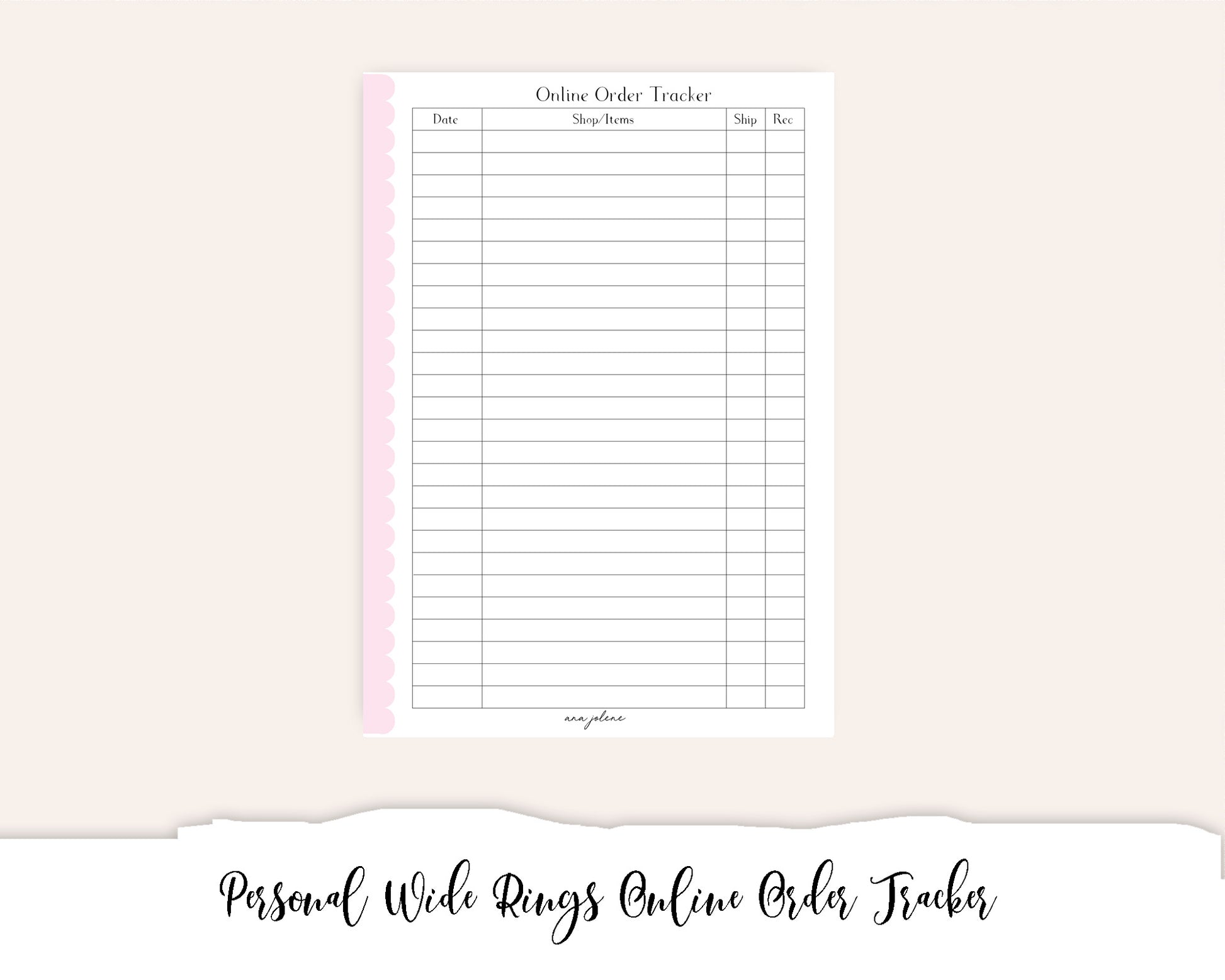 Personal Wide Rings Online Order Tracker (Budget) (Finance Planner) Printable