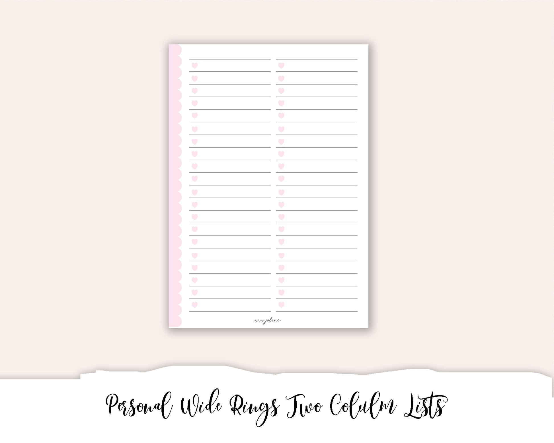 Personal Wide Rings Two Column Lists Printable