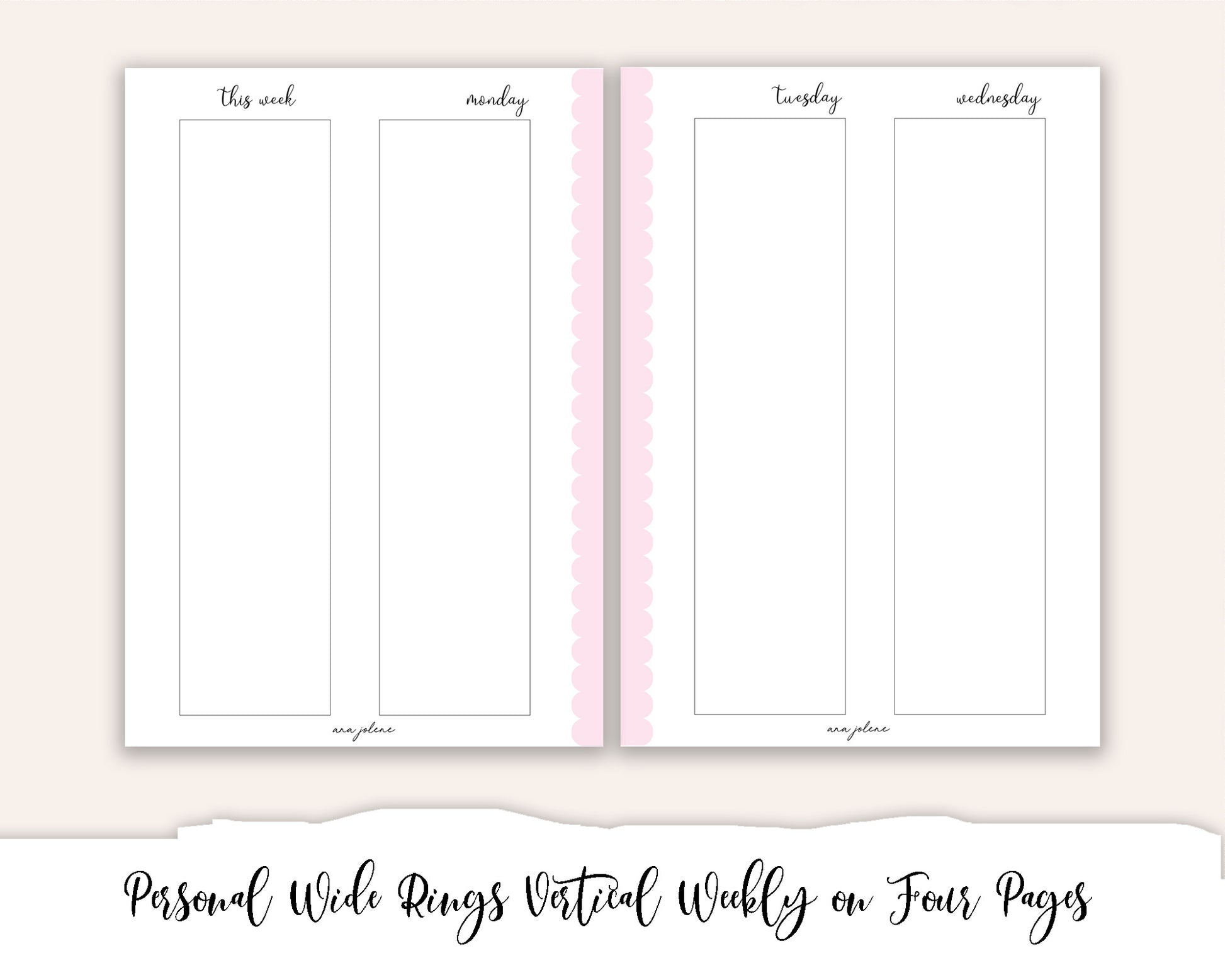 Personal Wide Rings Vertical Weekly on 4 Pages Printable