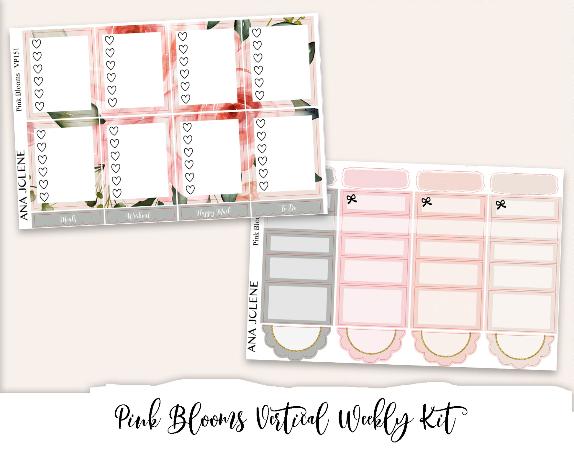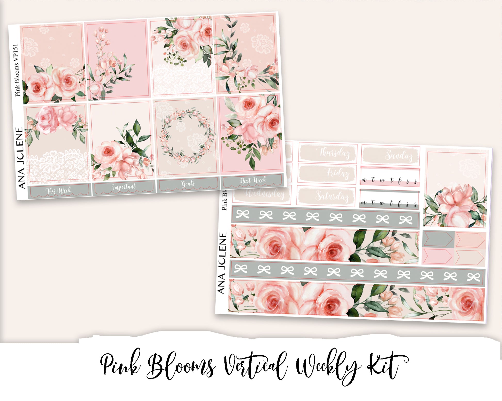 PINK BLOOMS Planner Sticker Kit (Vertical Weekly)