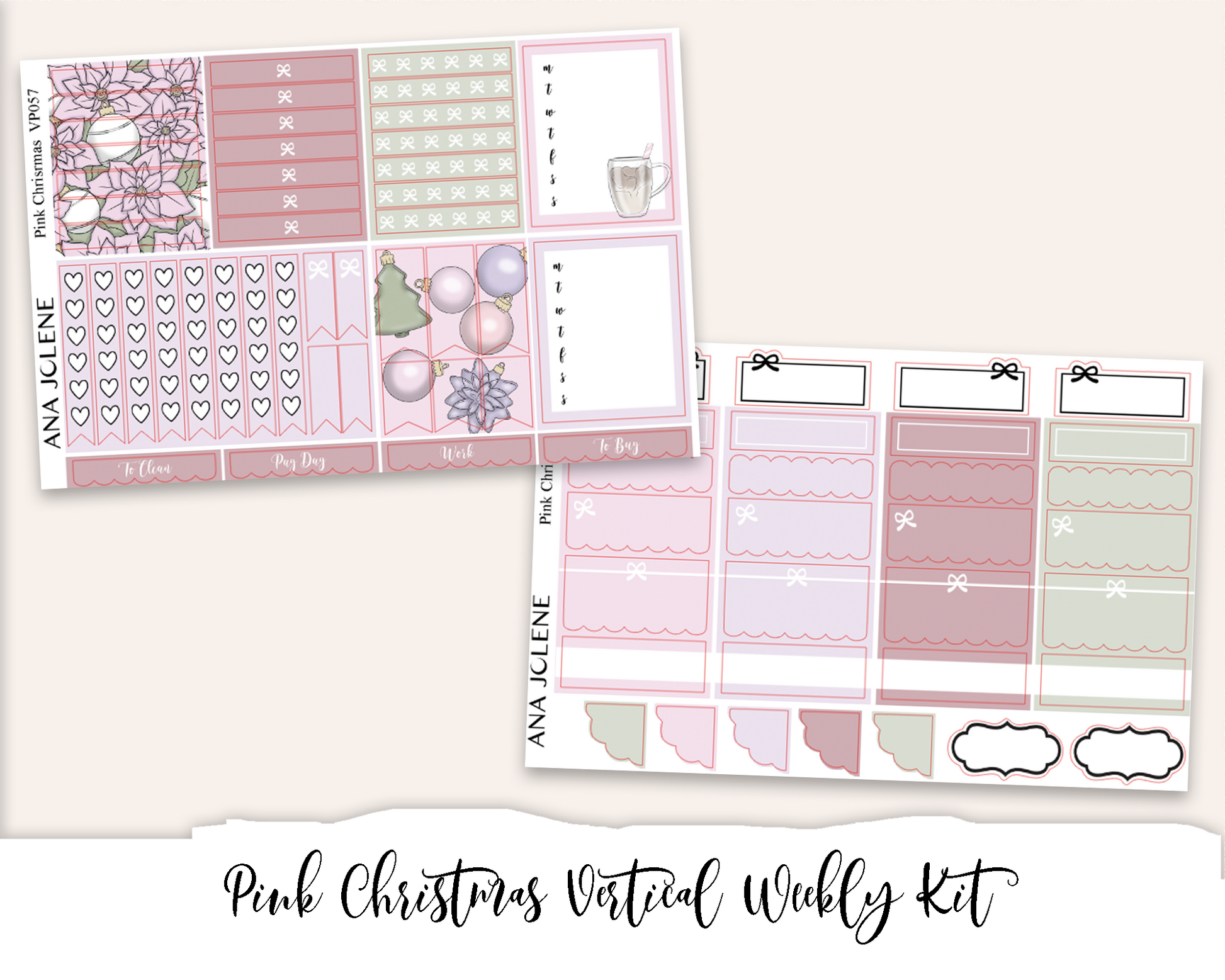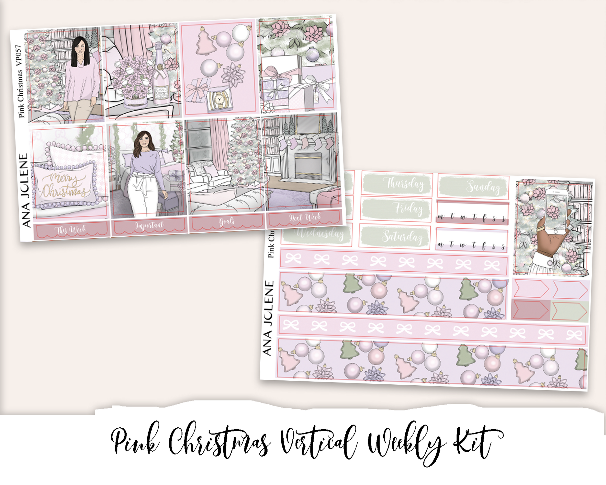 PINK CHRISTMAS Planner Sticker Kit (Vertical Weekly)