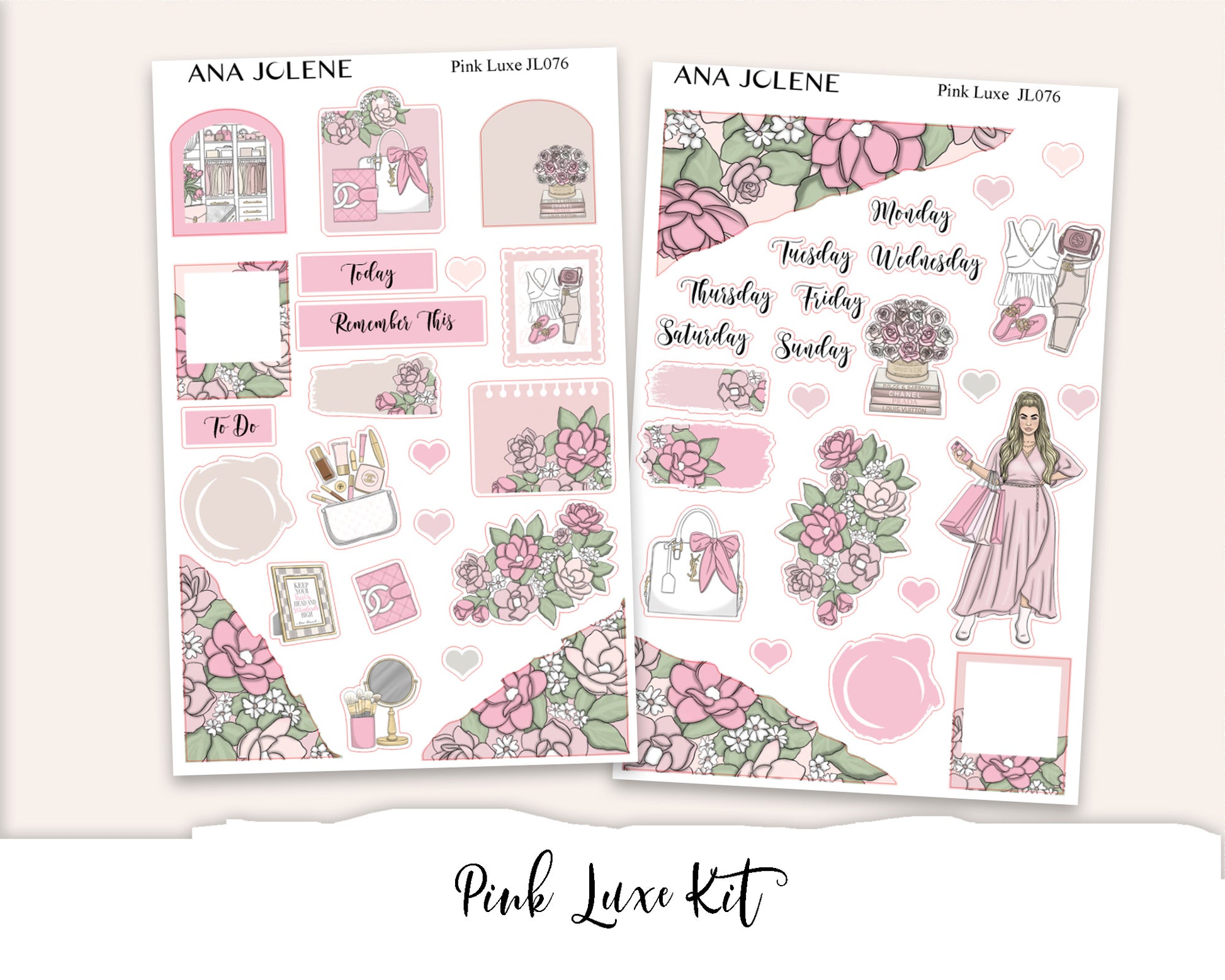 Planner Sticker Kit for bullet journals, Hobonichi and B6 Stalogy notebooks. This is a two page kit featuring medium sized ripped washi, swatches, deco elements and fashion girls, perfect to help you decorate your planners or journals.