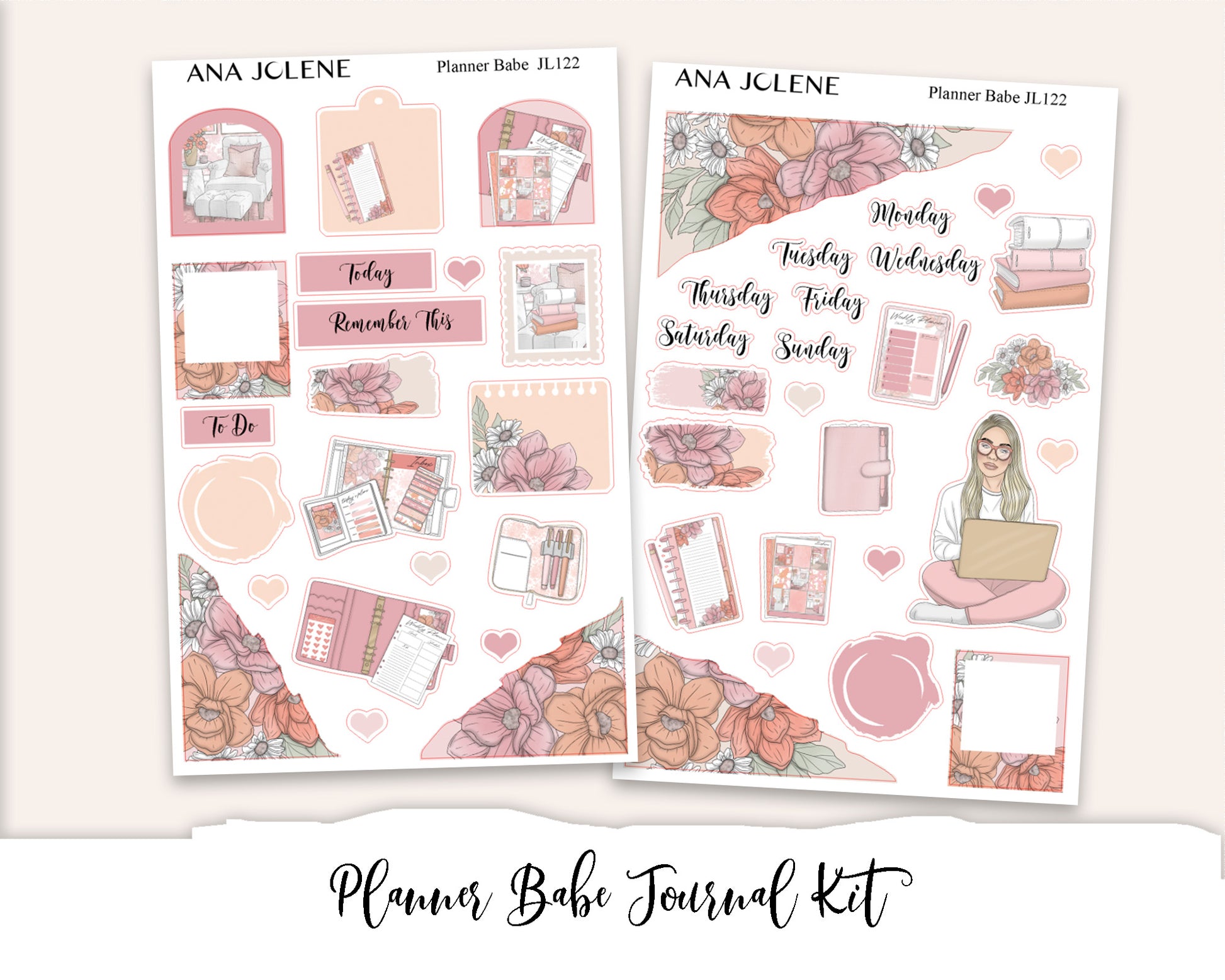 Planner Sticker Kit for bullet journals, Hobonichi and B6 Stalogy notebooks. This is a two page kit featuring medium sized ripped washi, swatches, deco elements and fashion girls, perfect to help you decorate your planners or journals.