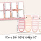 The mini kit includes 9 full boxes, scalloped sidebar headers, date covers, habit trackers, bottom washi, weekly sidebar boxes, 4 sets of headers, page flags, half boxes, quarter boxes, scalloped corners and a variety of fancy boxes.