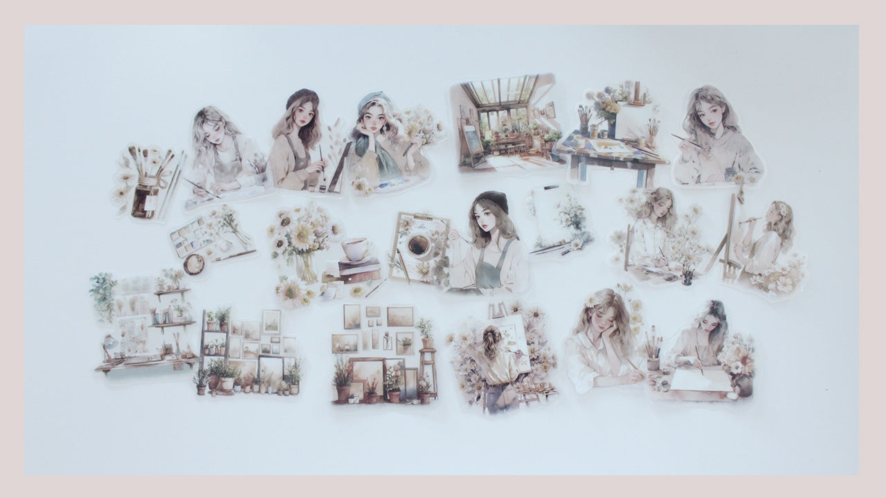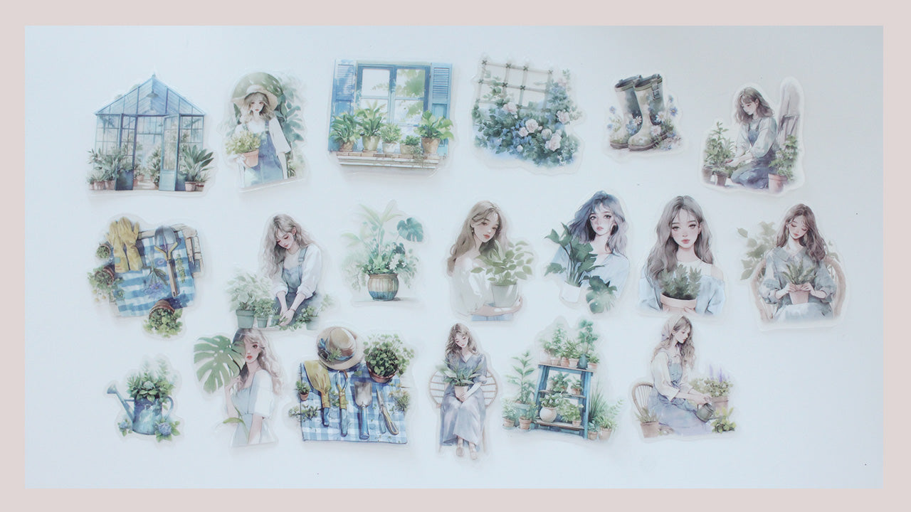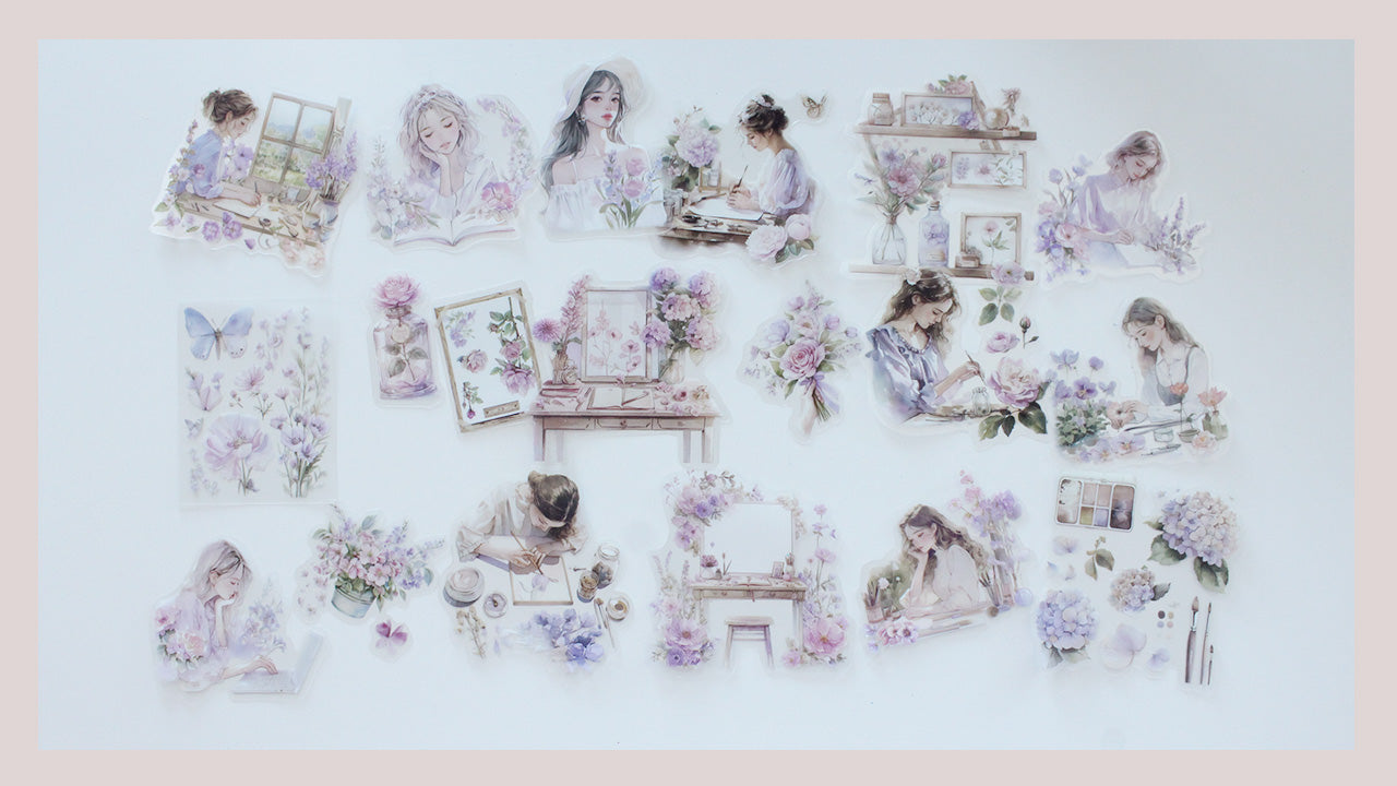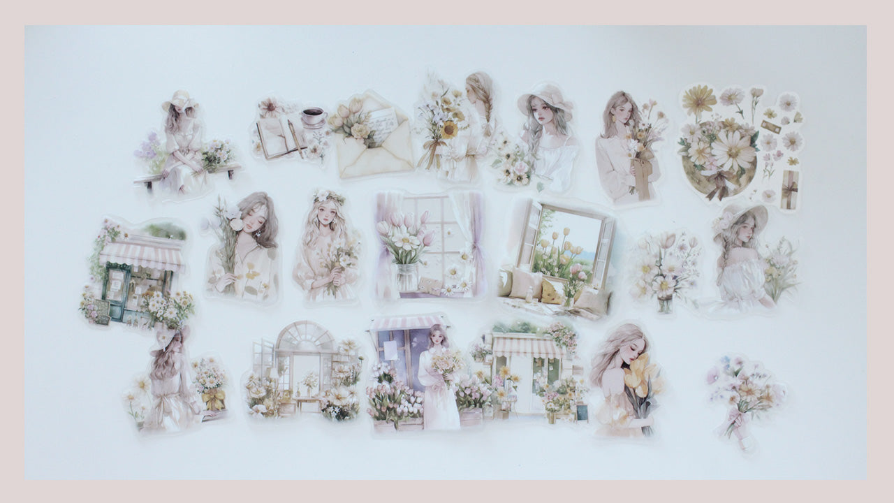 One grab bag of clear PET spring-style fashion girl stickers. Use in your planning or journaling spreads!