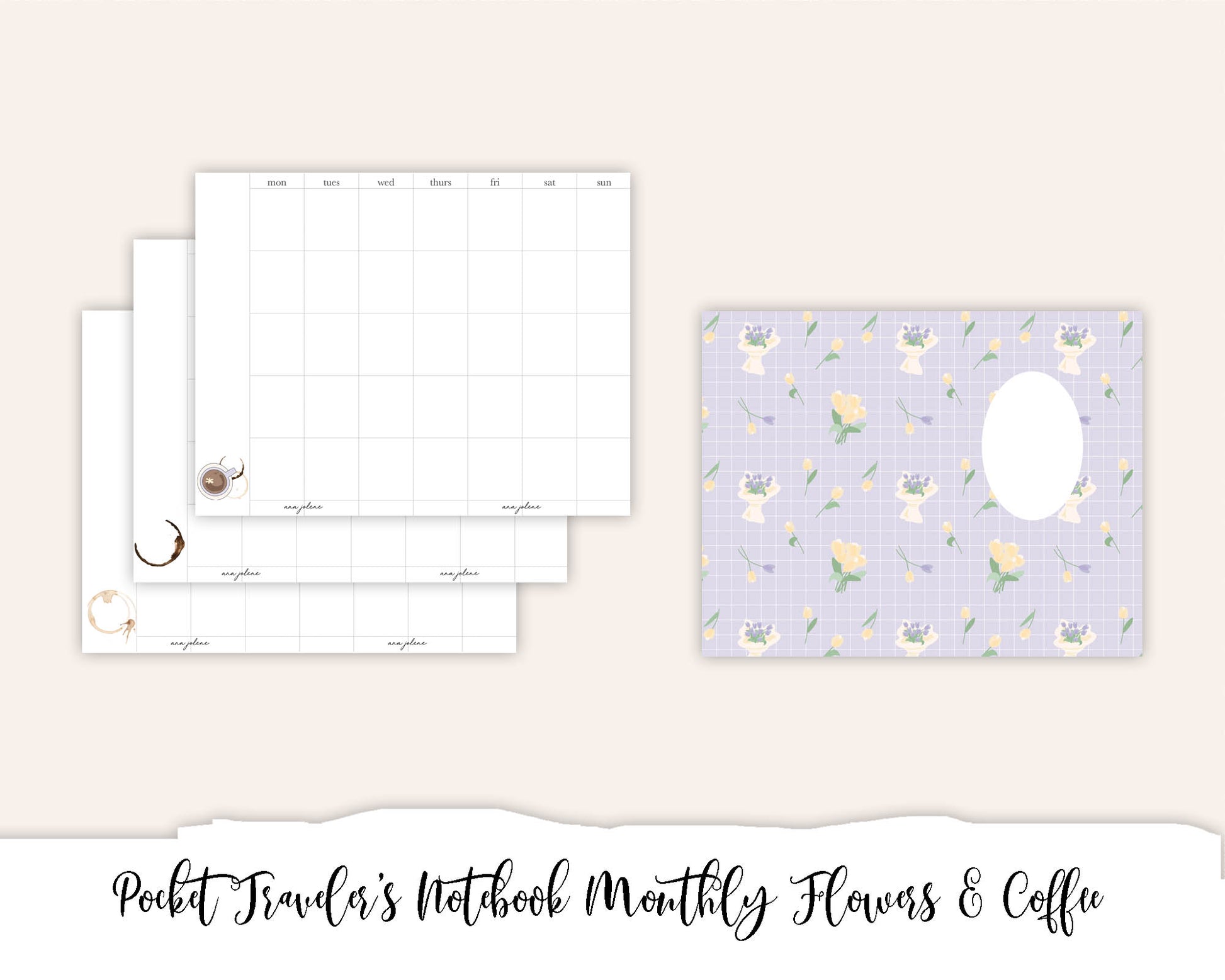 Pocket Traveler's Notebook Printable - Monthly Coffee & Flowers