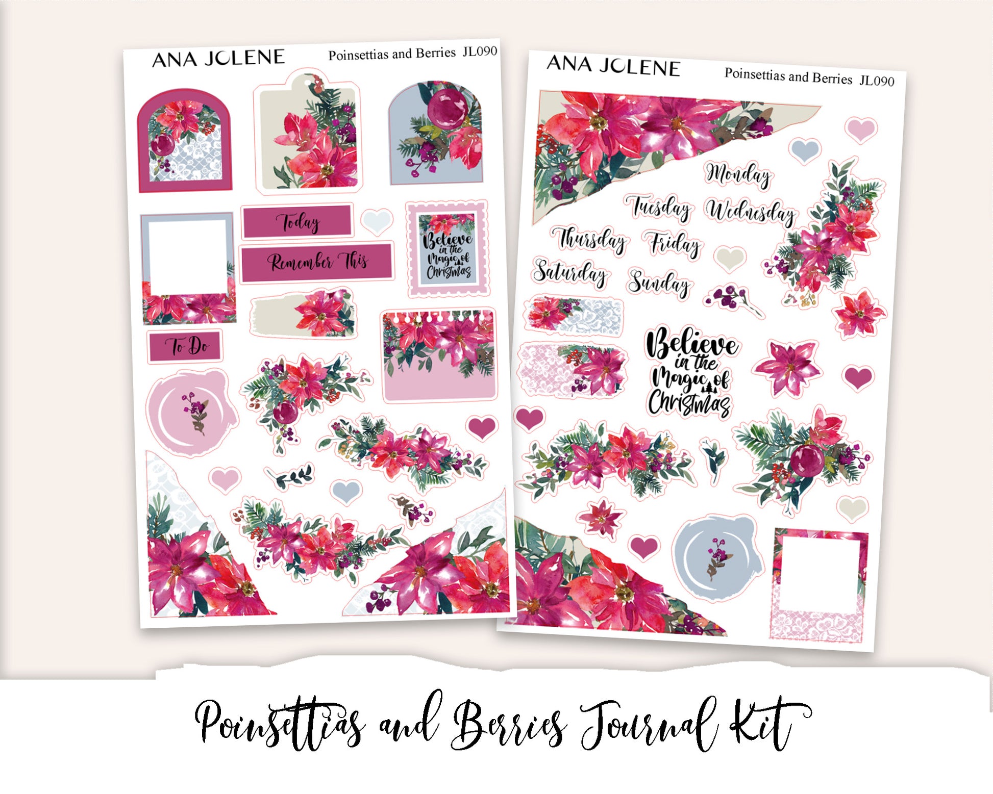 POINSETTIAS AND BERRIES Mini Journal Sticker Kit