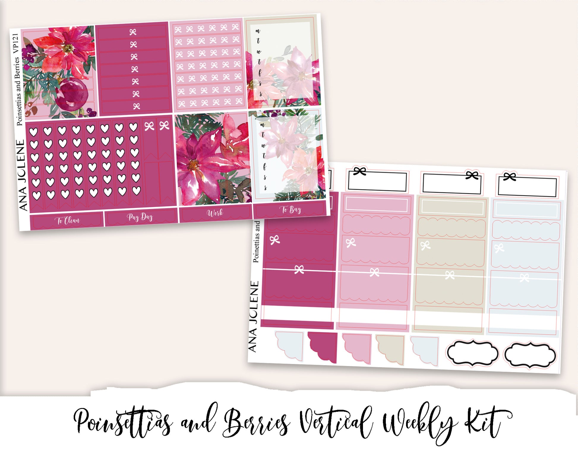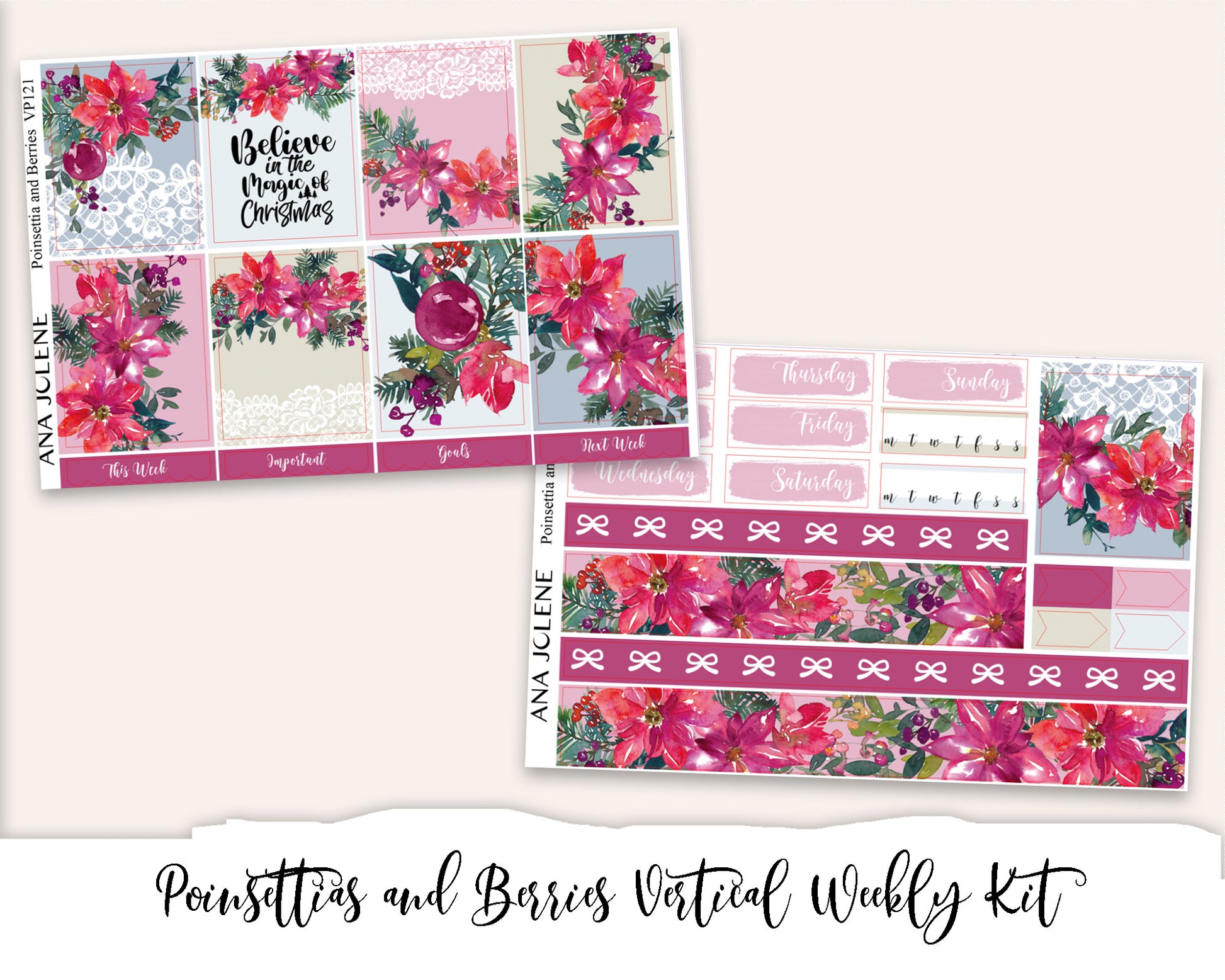 POINSETTIAS AND BERRIES Planner Sticker Kit (Vertical Weekly)