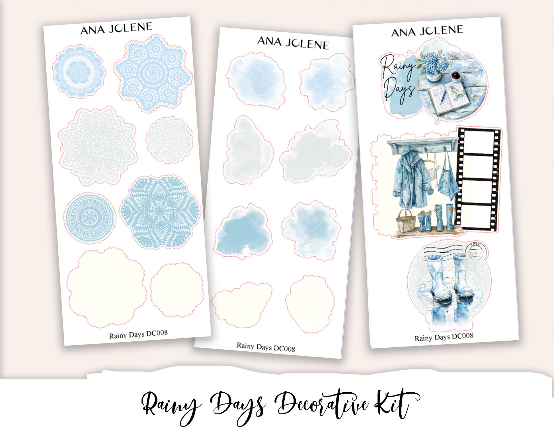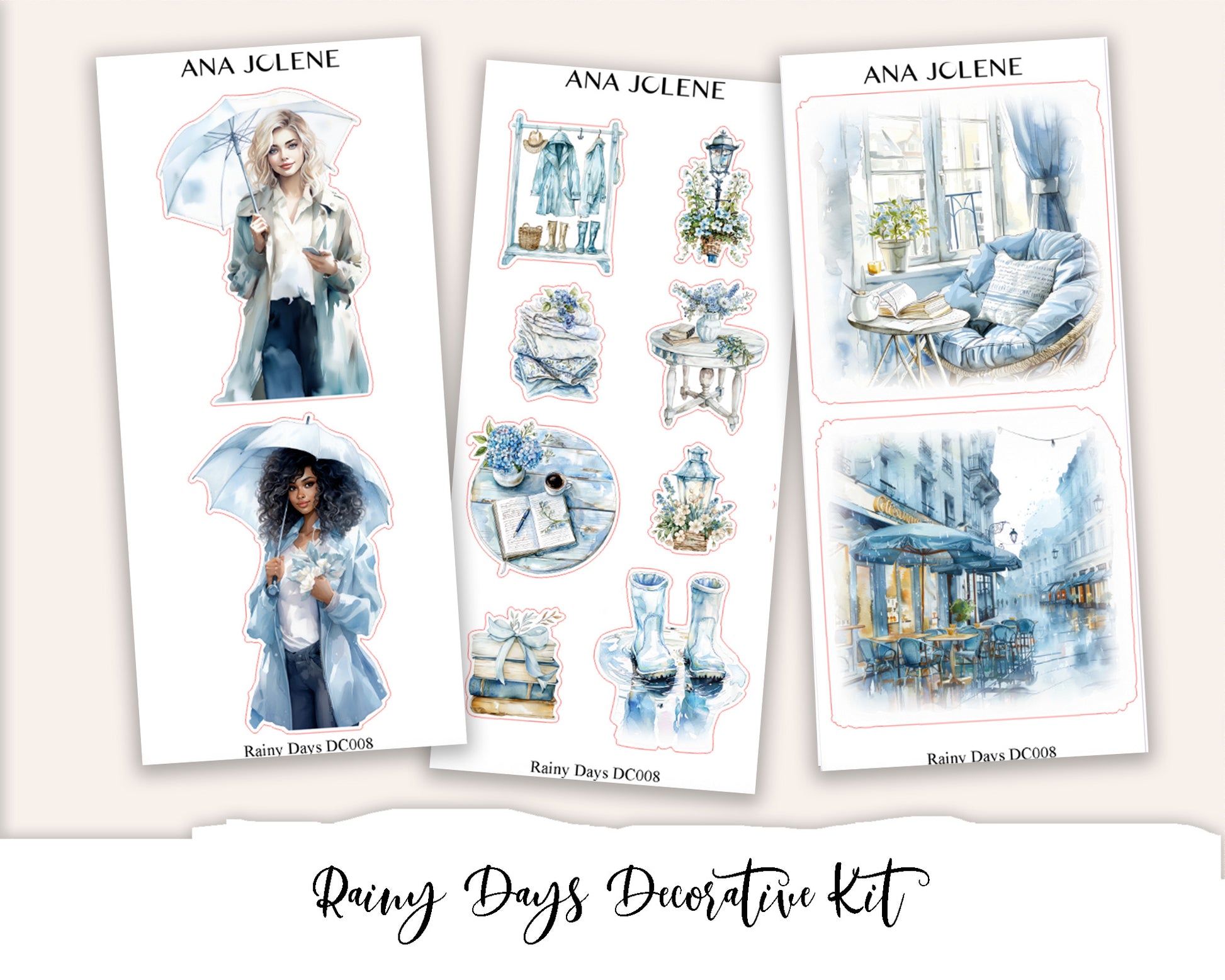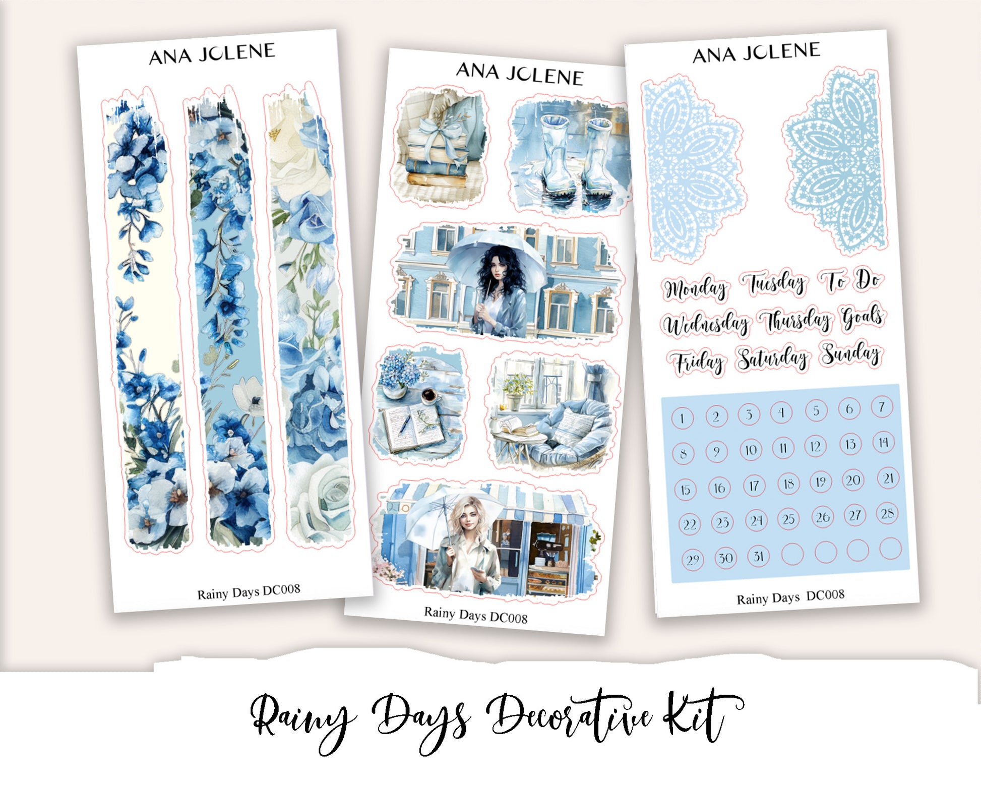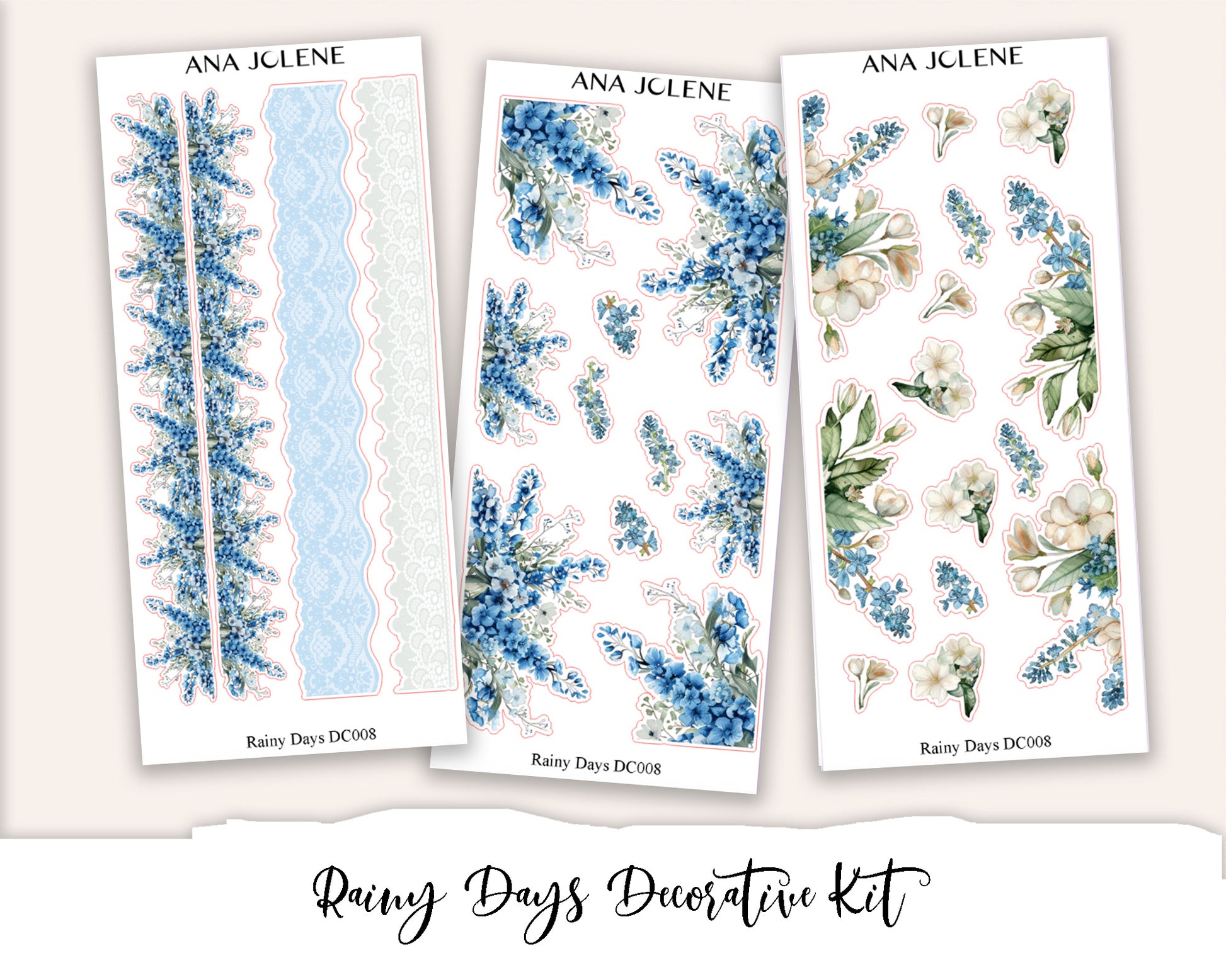This is a 9 page kit comprising of decorative stickers to use in your planners and journals. Includes various elements such as floral and lace trim, floral bouquets, floral corners, fashion girls, decorative elements and scenes as well as doilies, alcohol ink swatches and collages. Compatible with ALL planners.