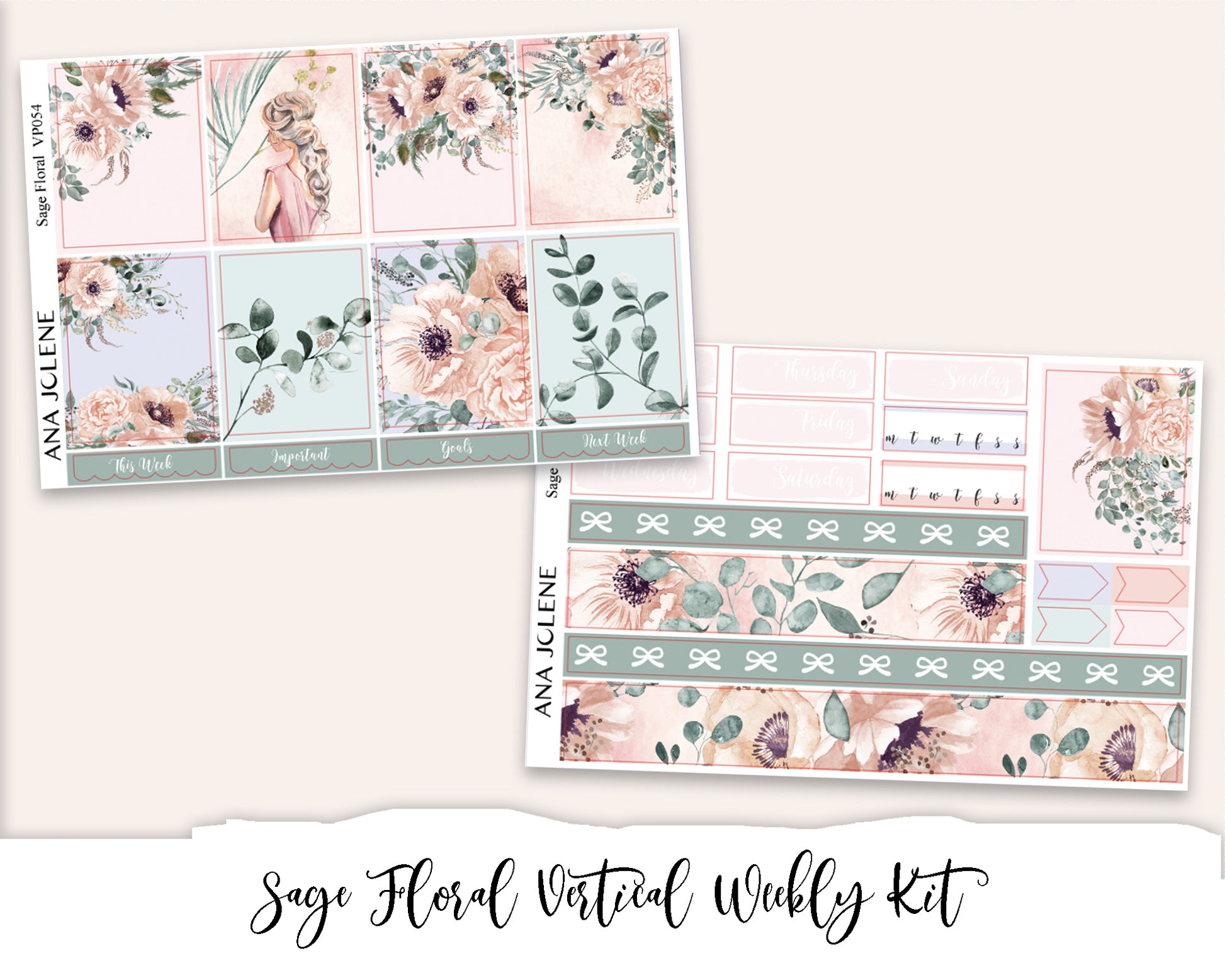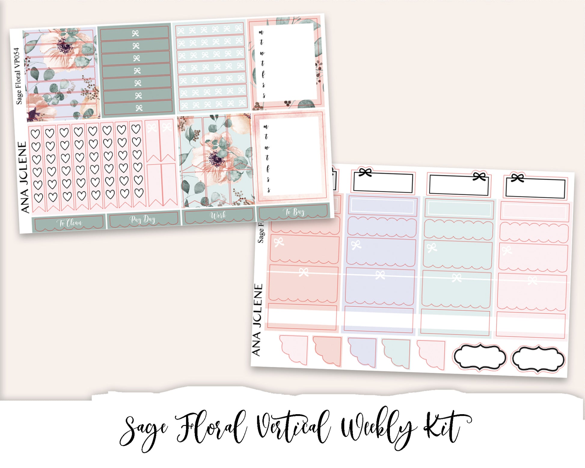 SAGE FLORAL Planner Sticker Kit (Vertical Weekly)
