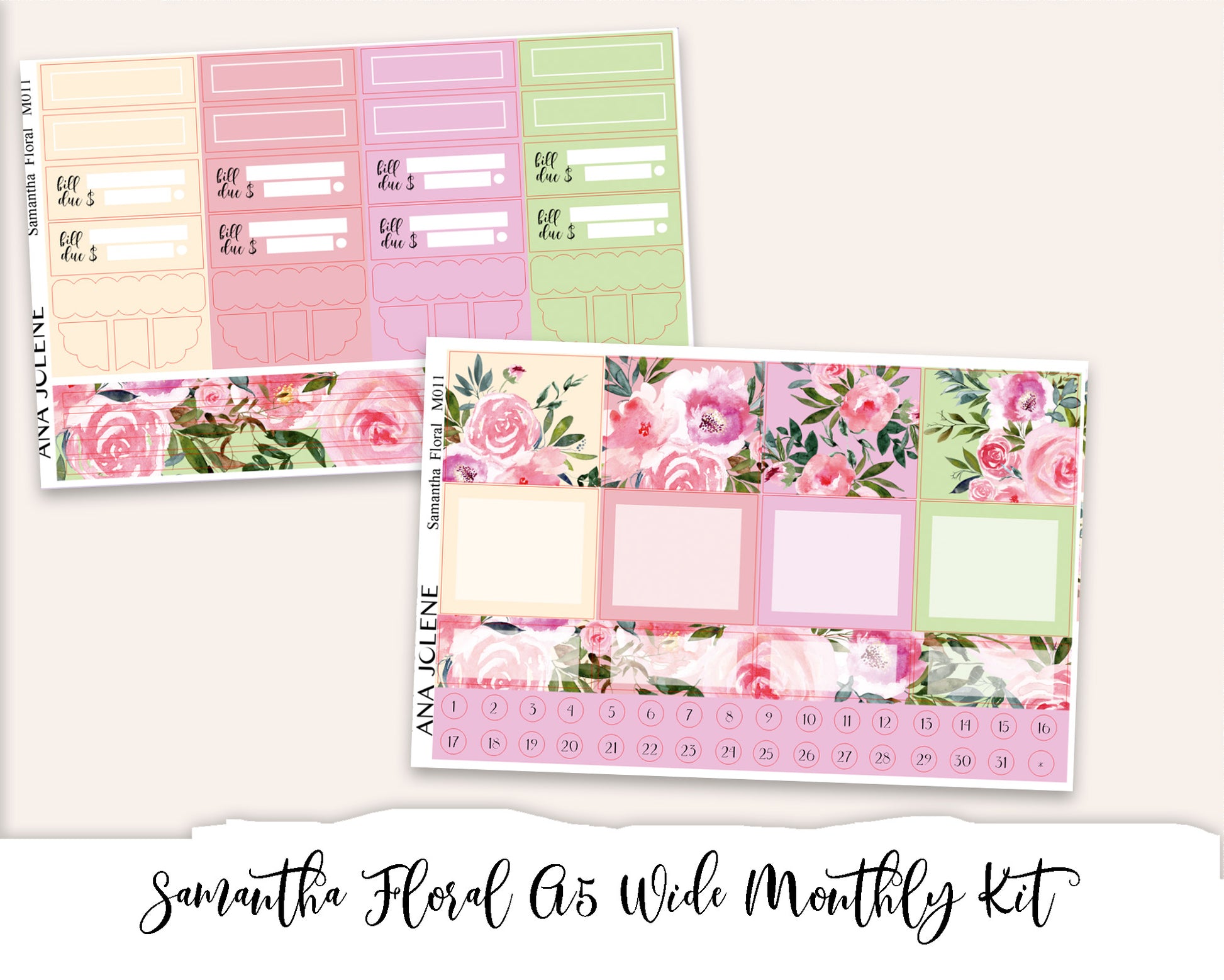 SAMANTHA FLORAL Monthly/Budget Planner Sticker Kit (A5 Wide)