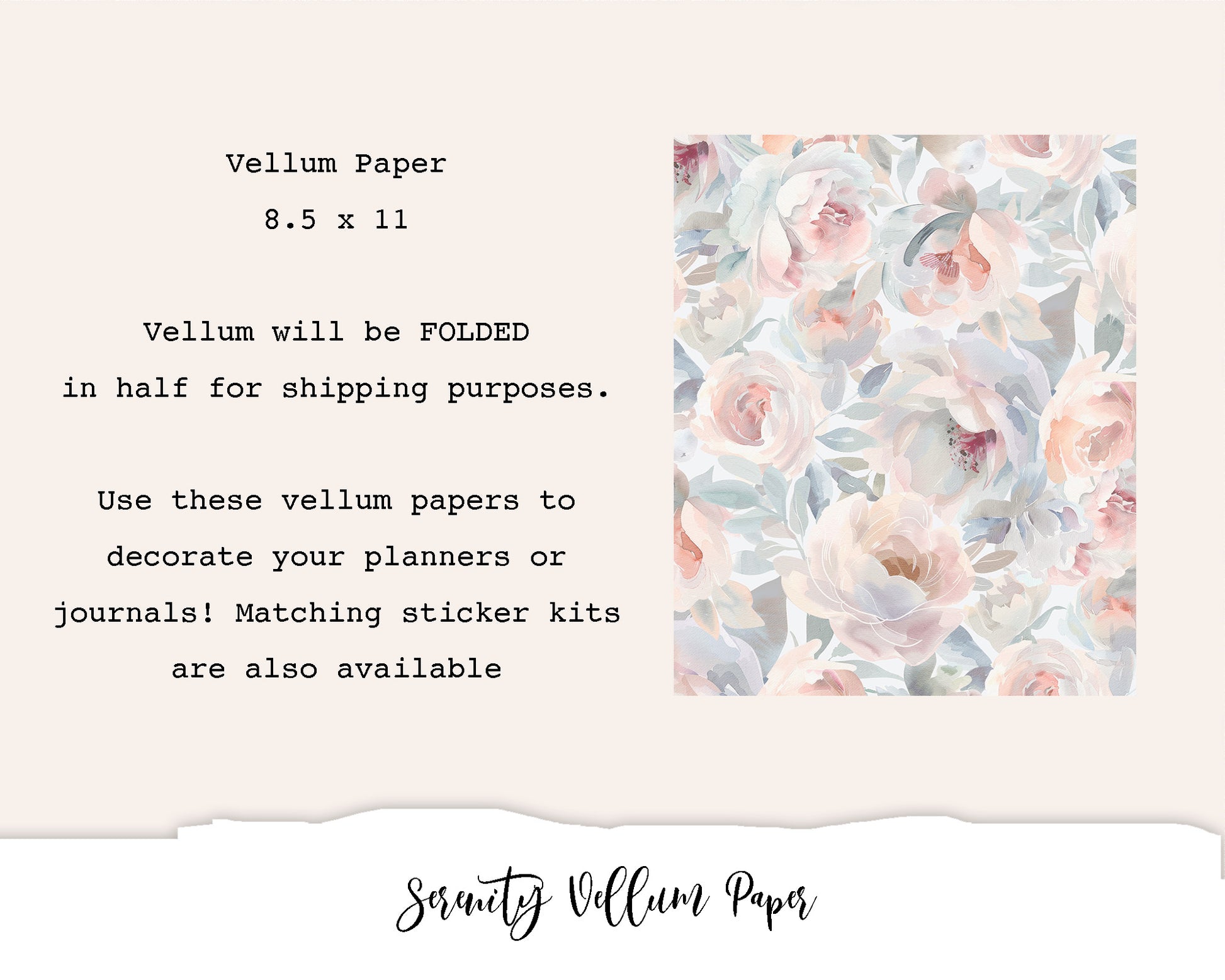 Please note that the vellum will be FOLDED for shipping purposes. Use in your planners and journals to decorate! Matching sticker kits are available too.