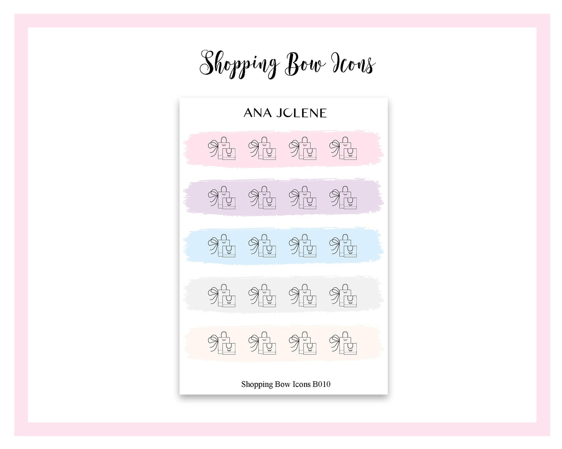 Shopping Bag Bow Icons - Minimal Line Art Bow Icons Stickers for Planners and Bullet Journal
