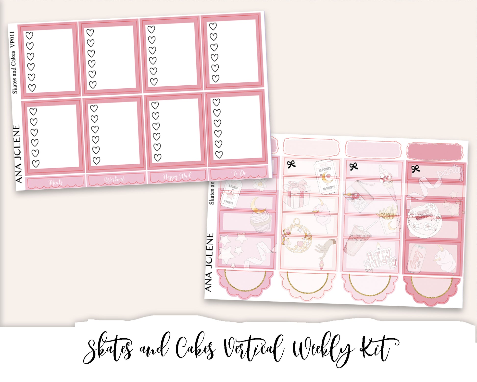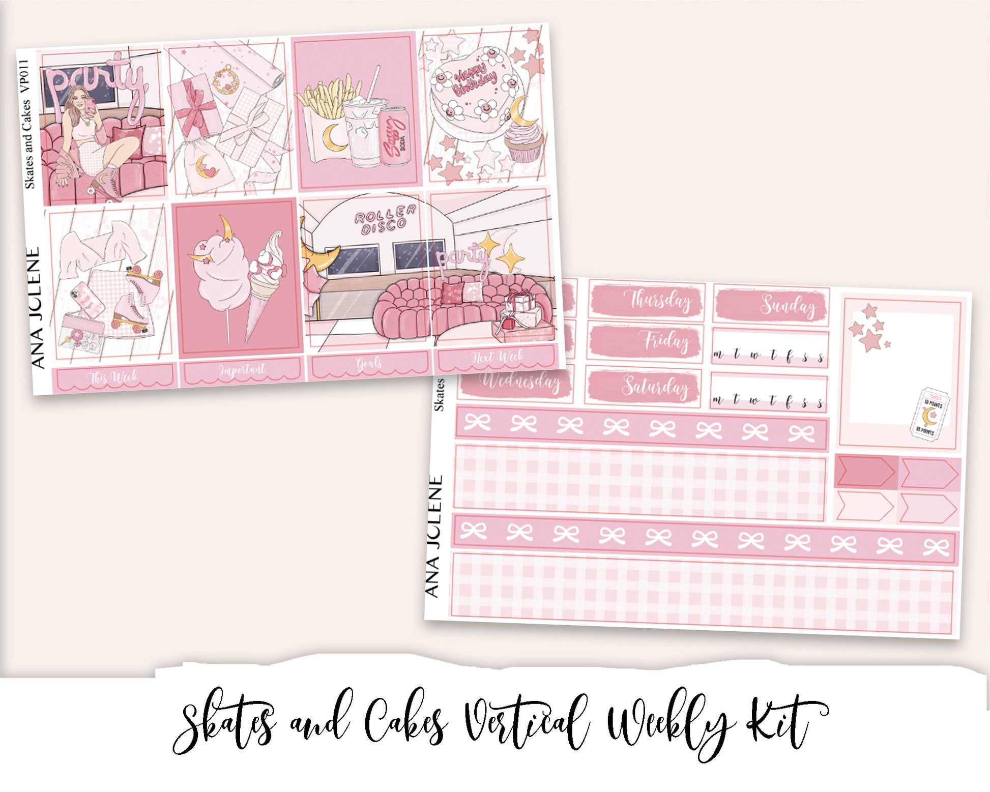 SKATES AND CAKES Planner Sticker Kit (Vertical Weekly) (Birthday/Celebration)