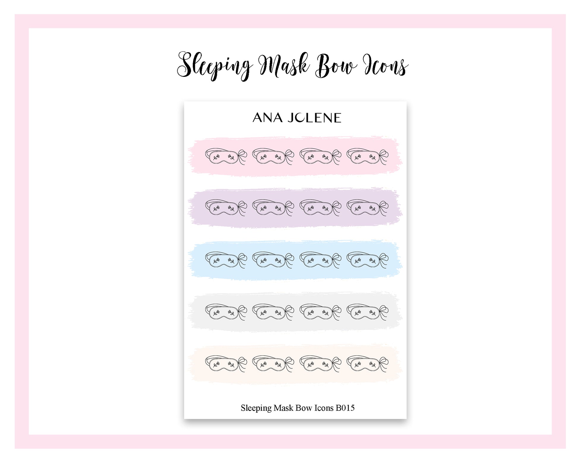 Sleeping Mask Bow Icons - Minimal Line Art Bow Icons Stickers for Planners and Bullet Journal