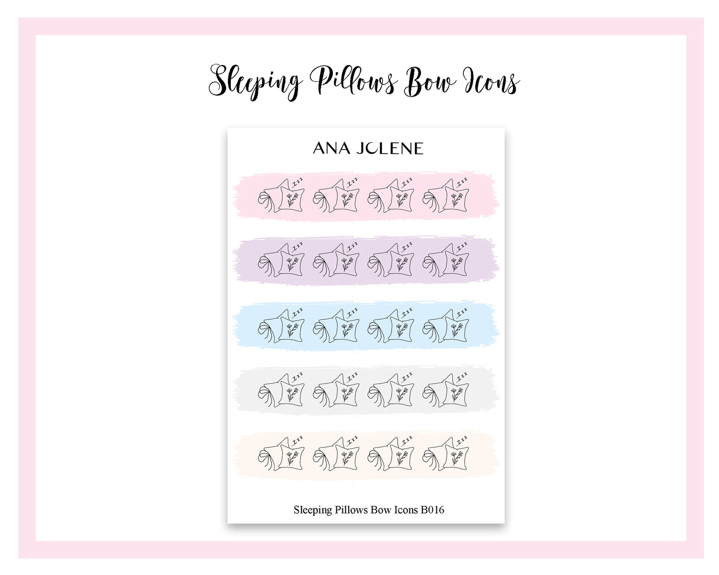 Sleeping Pillow Bow Icons - Minimal Line Art Bow Icons Stickers for Planners and Bullet Journal