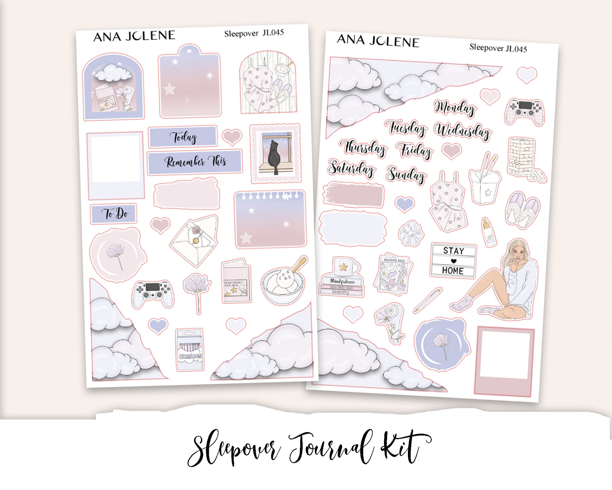Planner Sticker Kit for bullet journals, Hobonichi and B6 Stalogy notebooks. This is a two page kit featuring medium sized ripped washi, swatches, deco elements and fashion girls, perfect to help you decorate your planners or journals.