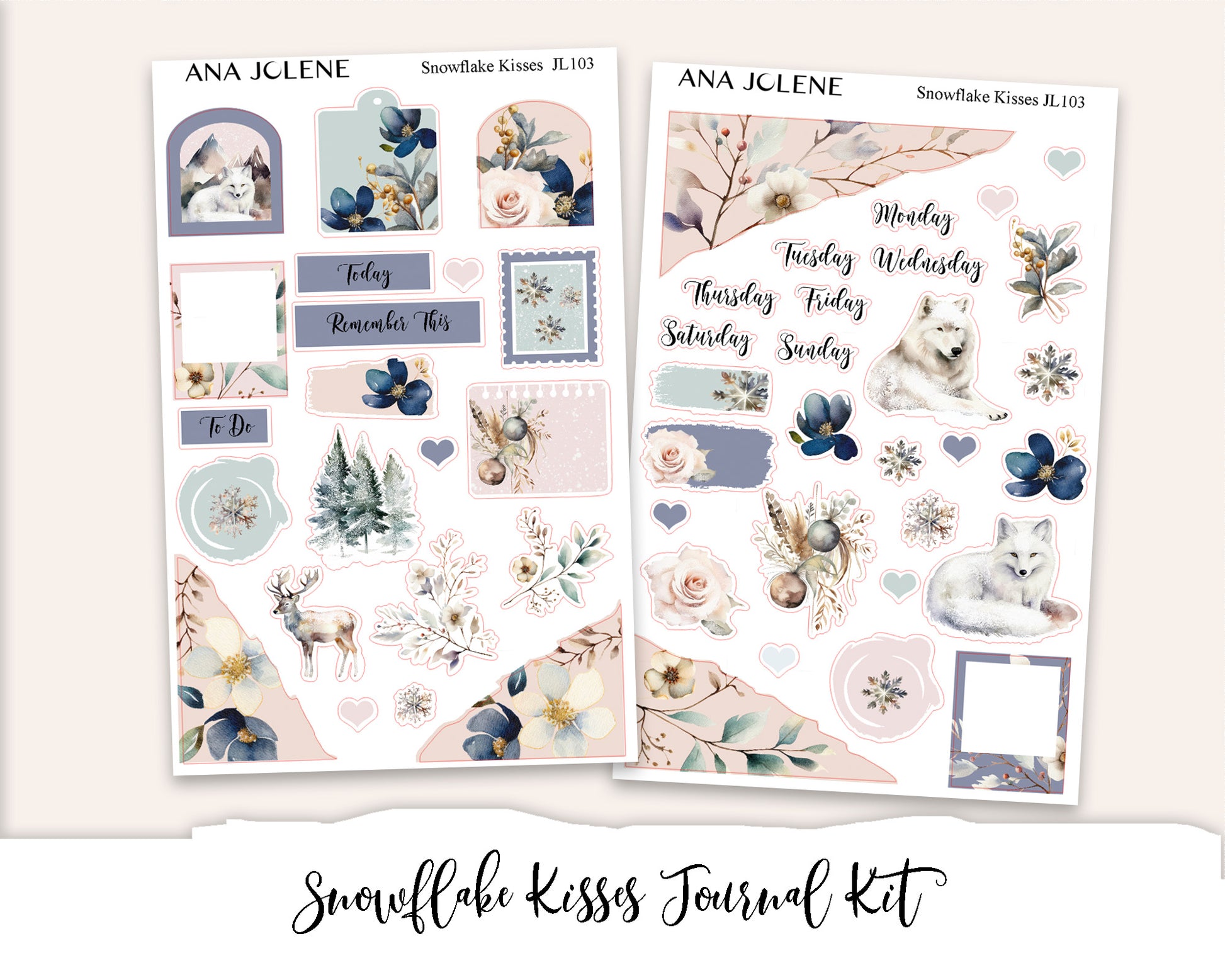 SNOWFLAKE KISSES Mini Journal Sticker Kit