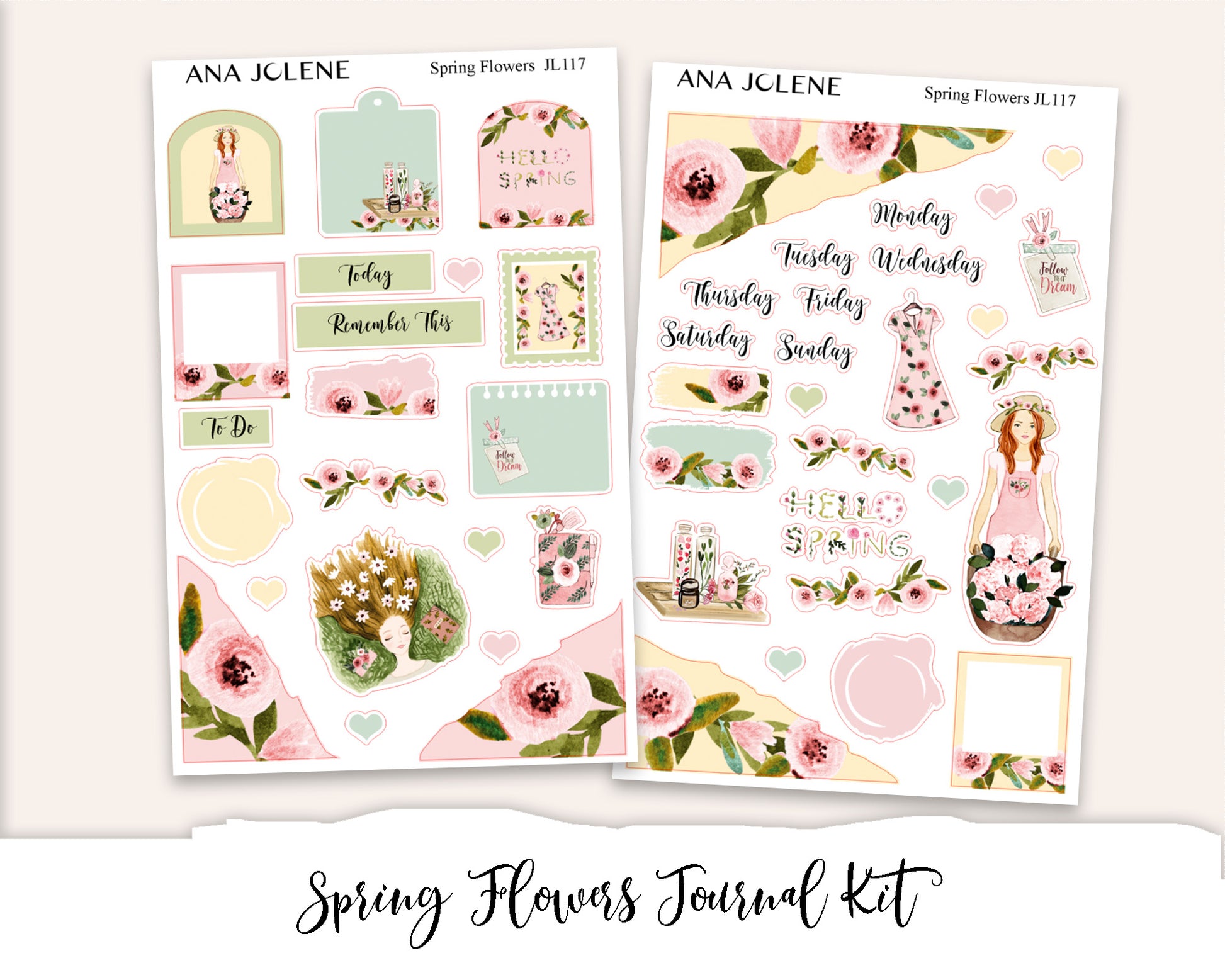 Planner Sticker Kit for bullet journals, Hobonichi and B6 Stalogy notebooks. This is a two page kit featuring medium sized ripped washi, swatches, deco elements and fashion girls, perfect to help you decorate your planners or journals.