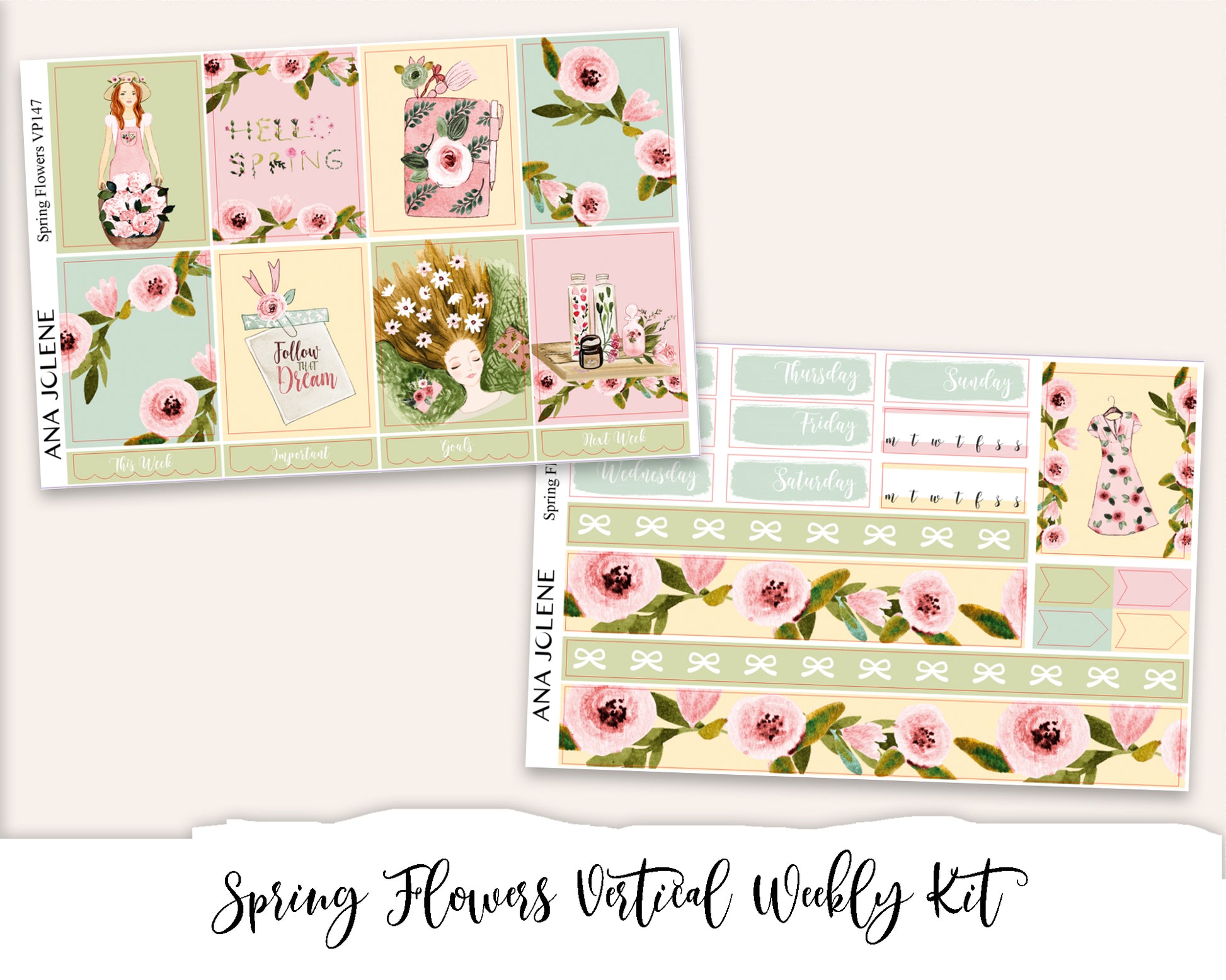 SPRING FLOWERS Planner Sticker Kit (Vertical Weekly)