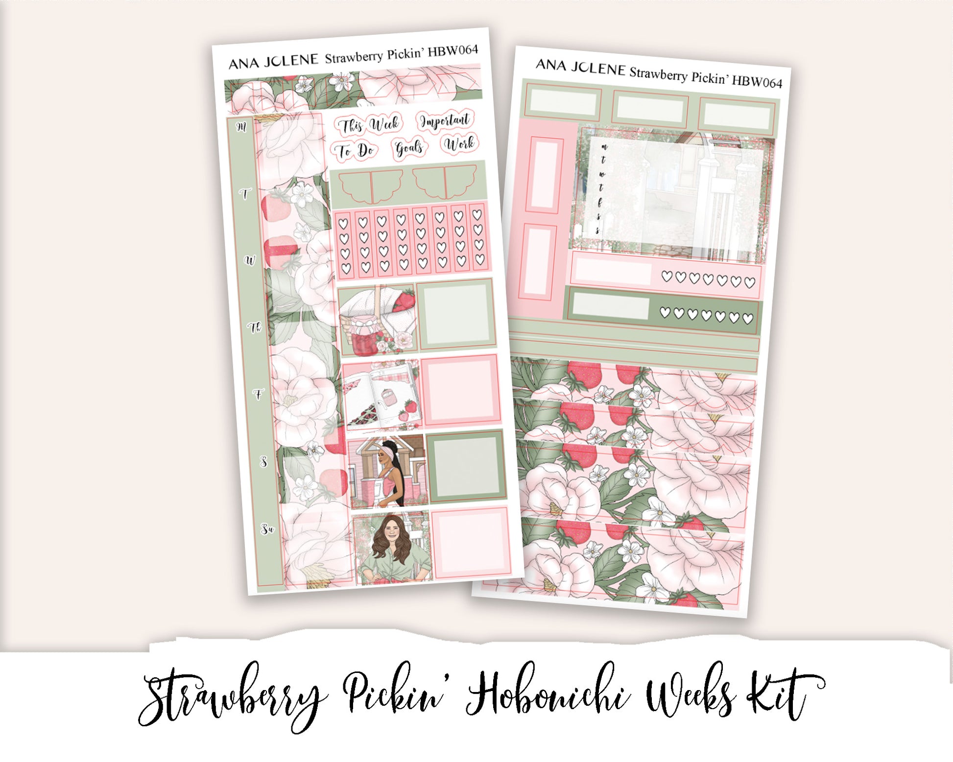 STRAWBERRY PICKIN' Hobonichi Weeks Planner Sticker Kit